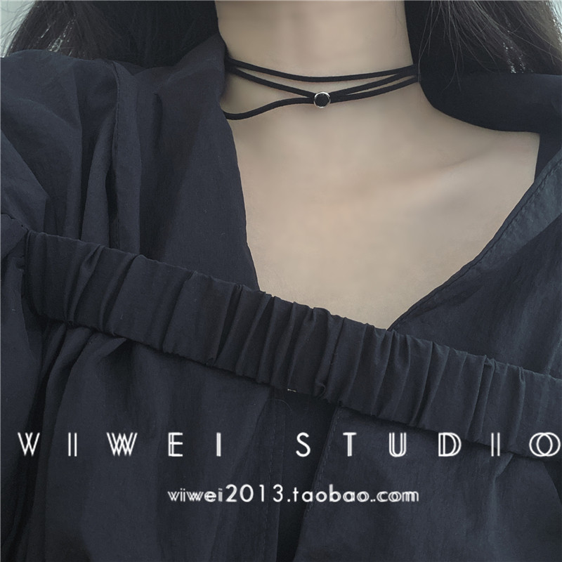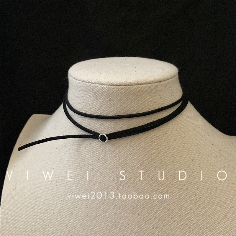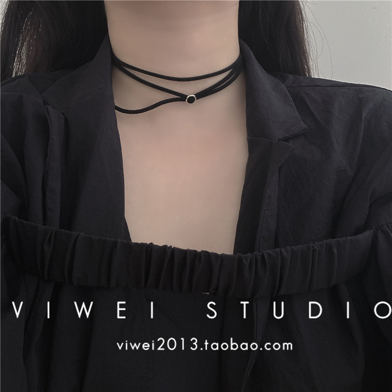 「日常不出错」迷你极简风百搭黑色简单港风小圆环锁骨链颈带项圈
