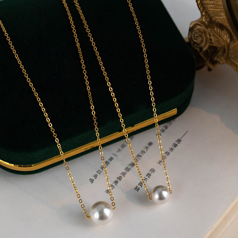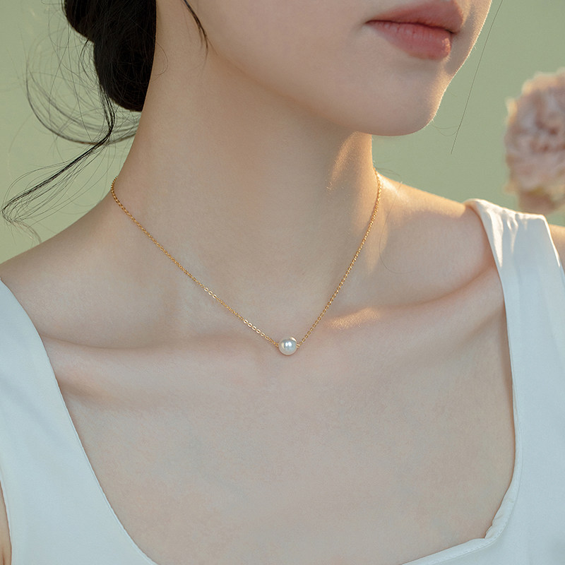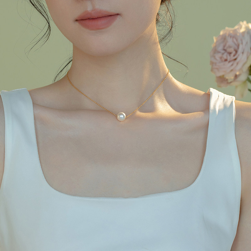 路路通/美国14k包金项链锁骨链正圆施家超亮珍珠颈链礼物女优雅