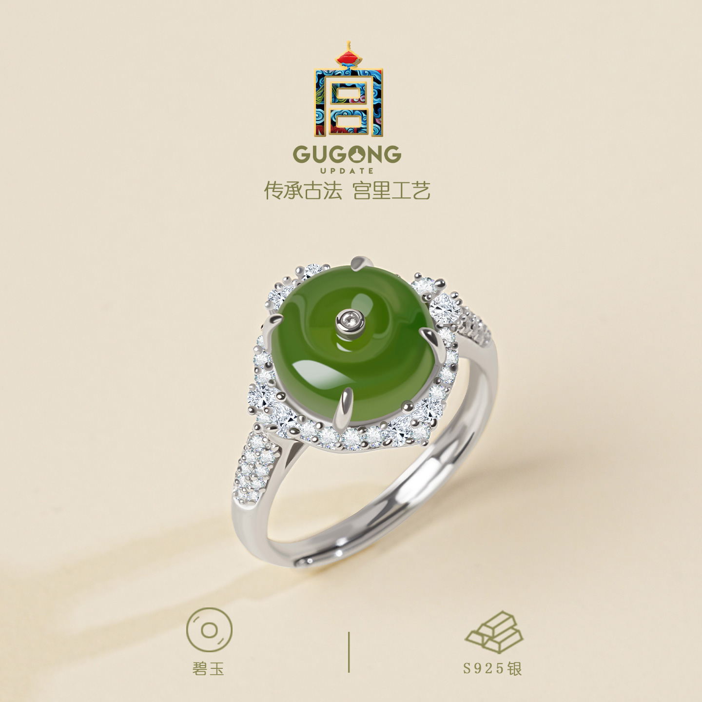 宫里上新和田玉戒指女纯银正品玉石碧玉旺财手饰生日礼物送妈妈
