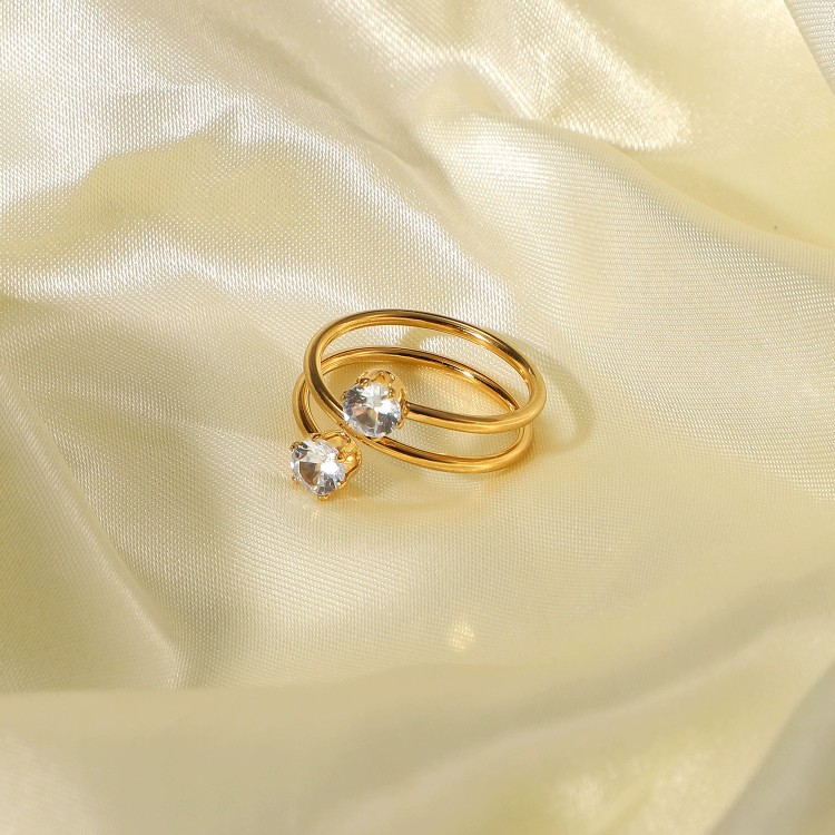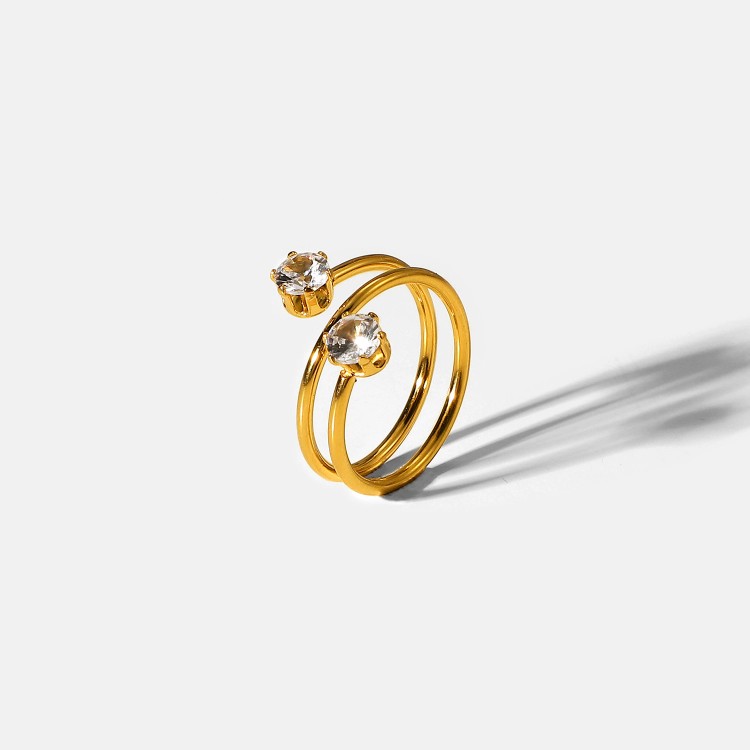 欧美INS网红同款并排白锆2钻开口戒18K镀金不锈钢戒指女式饰品