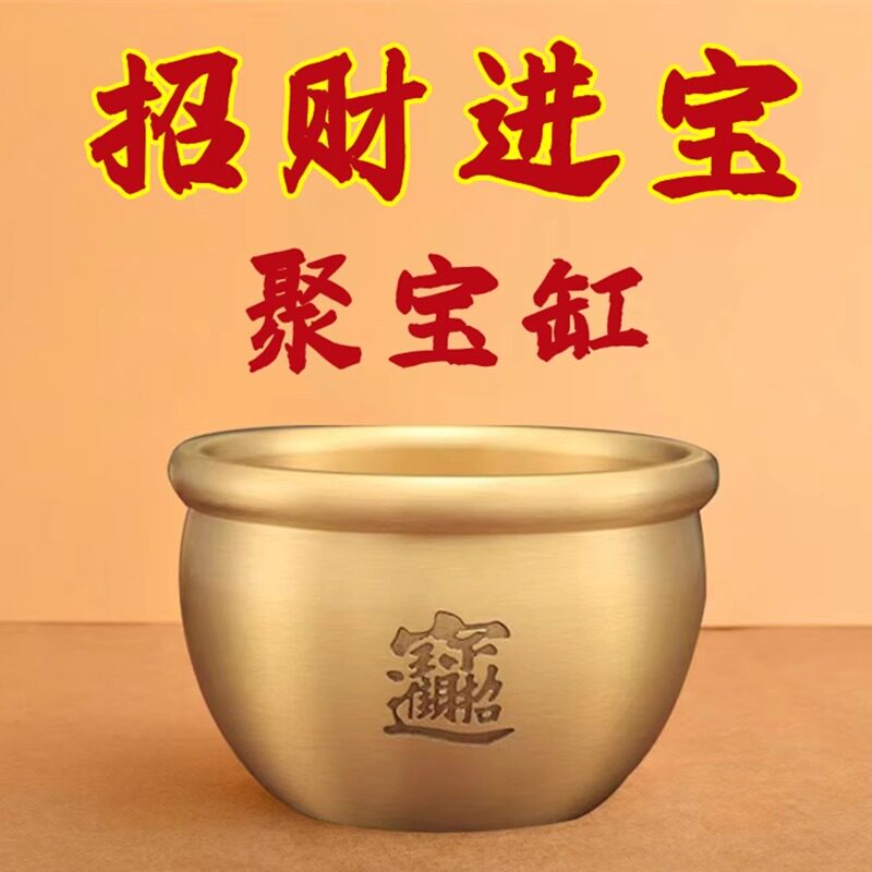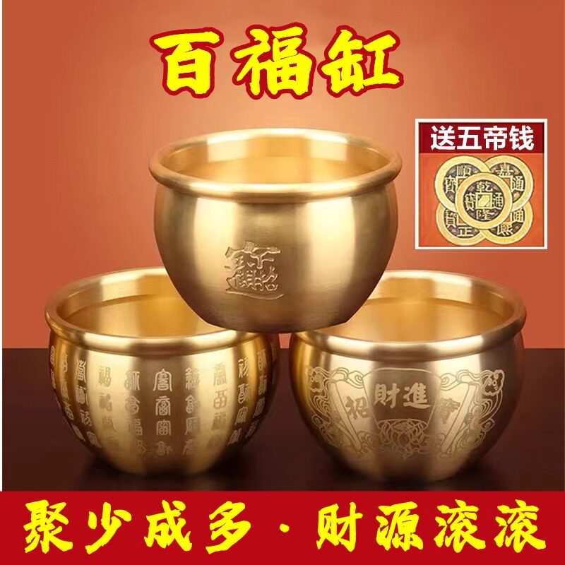 黄铜招财百福缸米缸聚财卧室客厅书房桌面聚宝盆摆件纯铜百福水缸