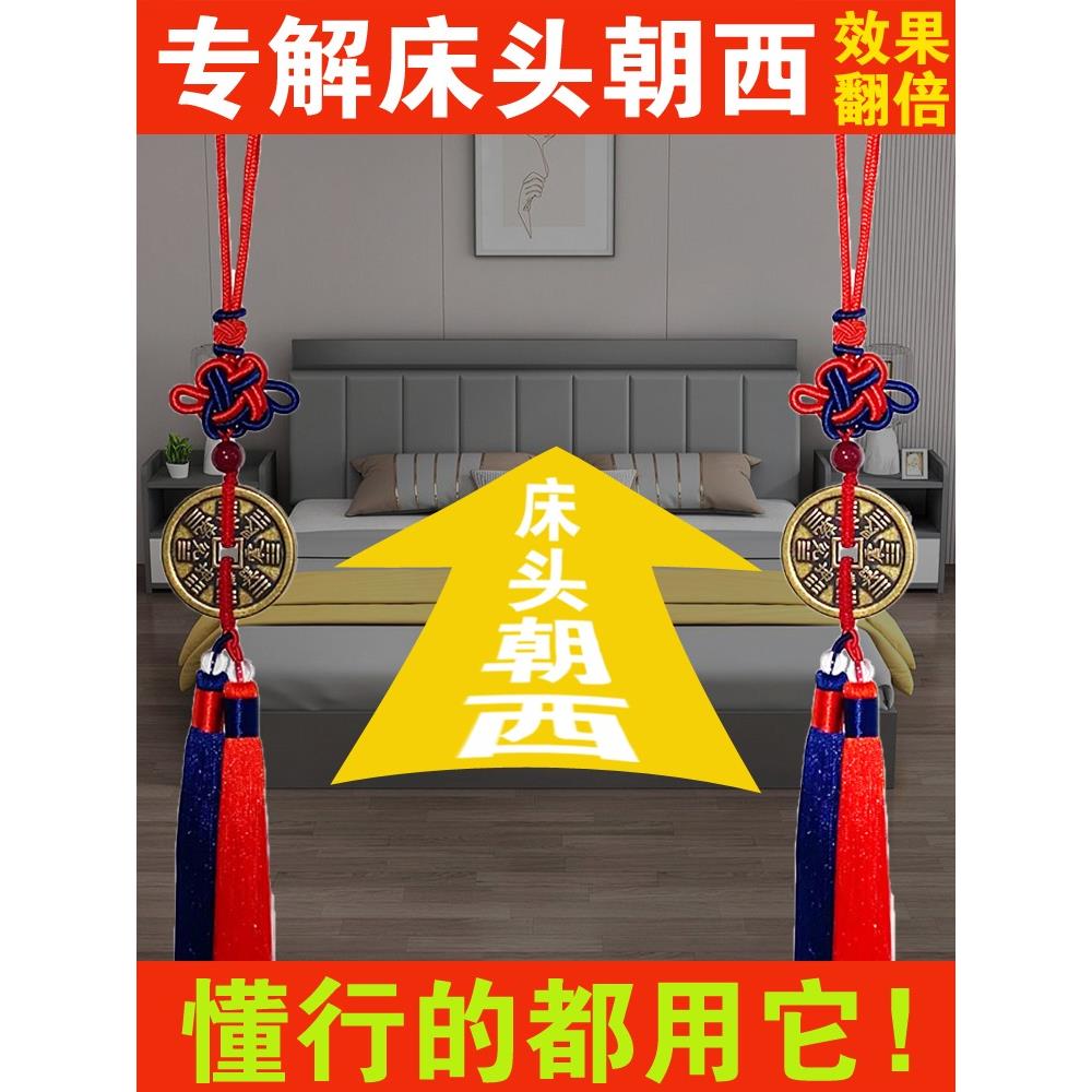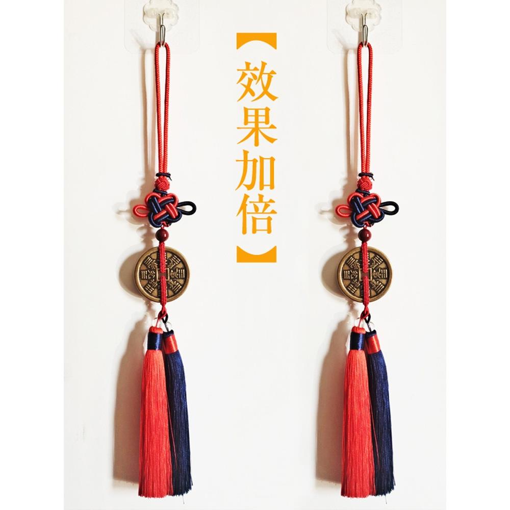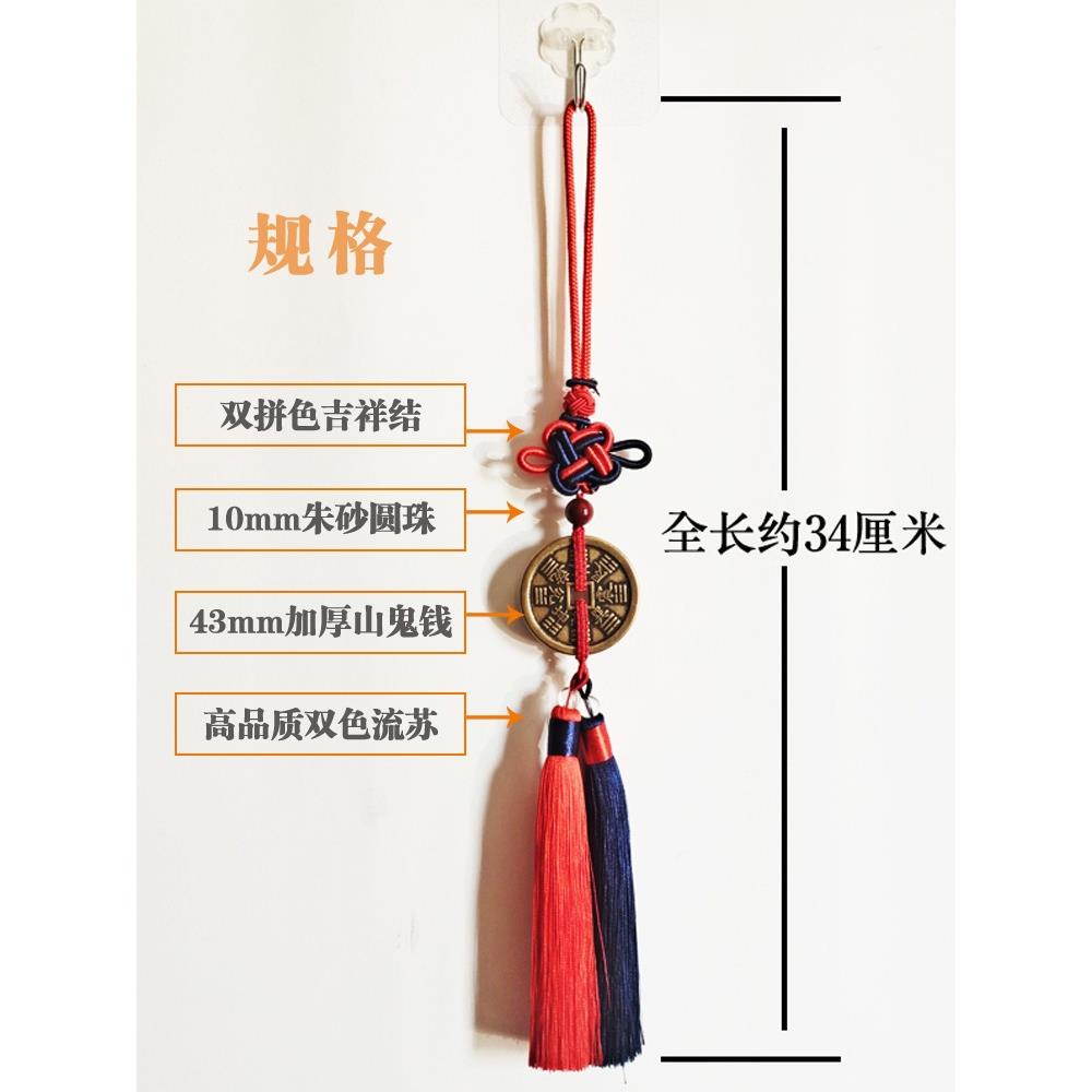 化解卧室床头朝西吉祥物挂件黄铜山鬼花钱八卦铜钱车挂吊坠可佩戴