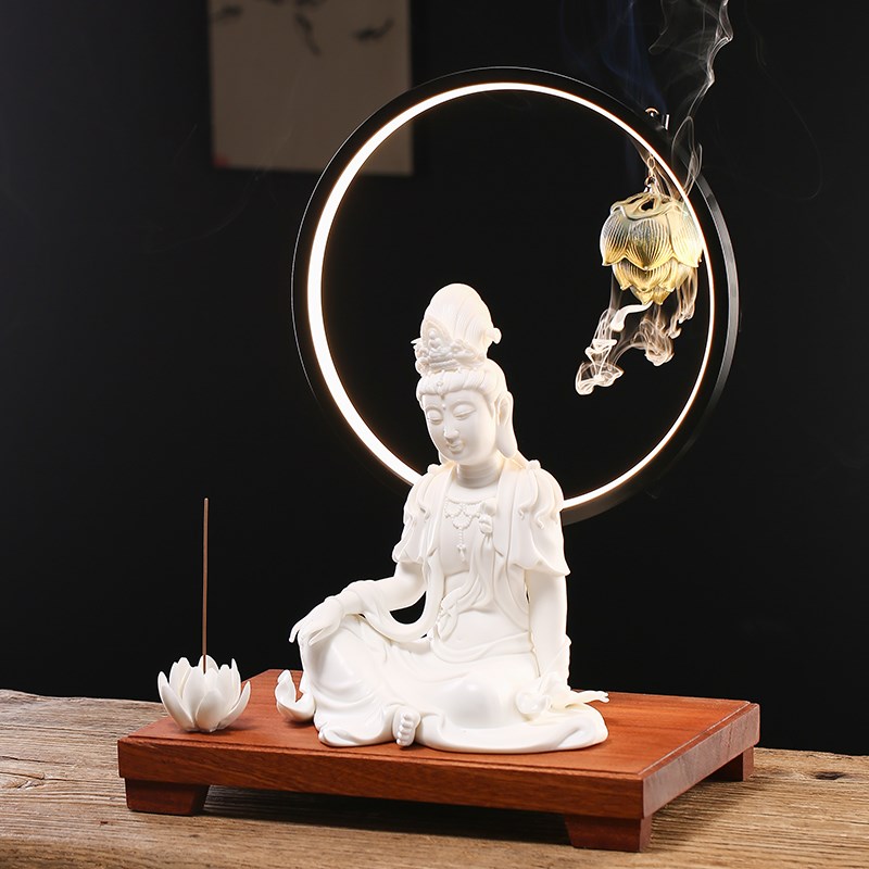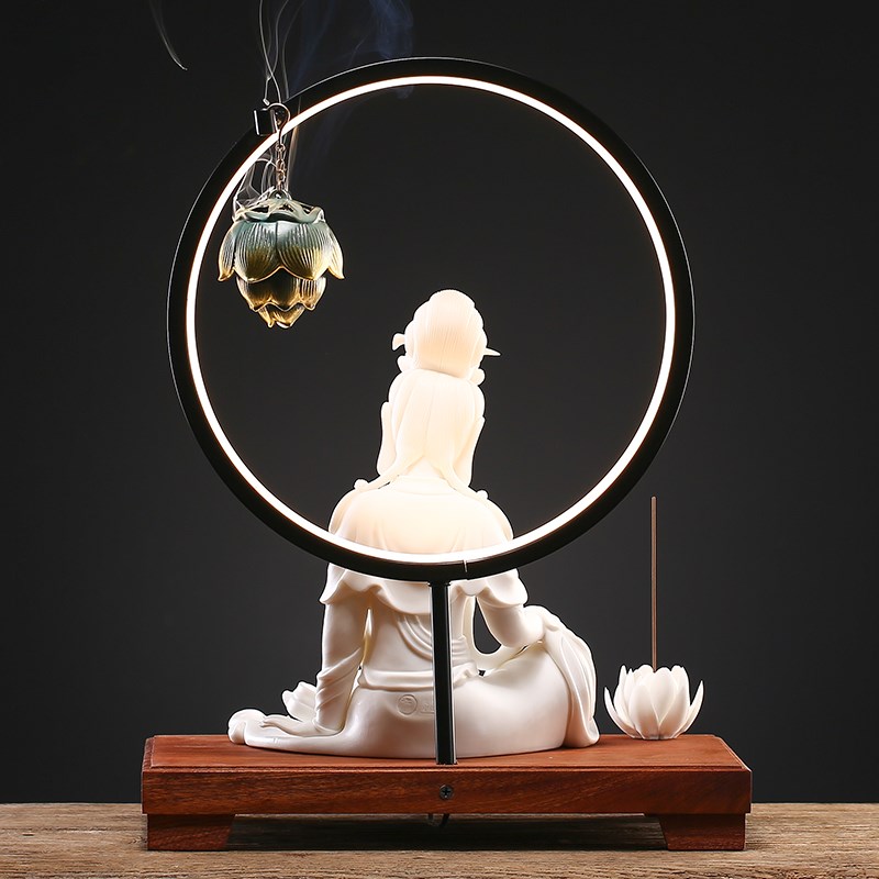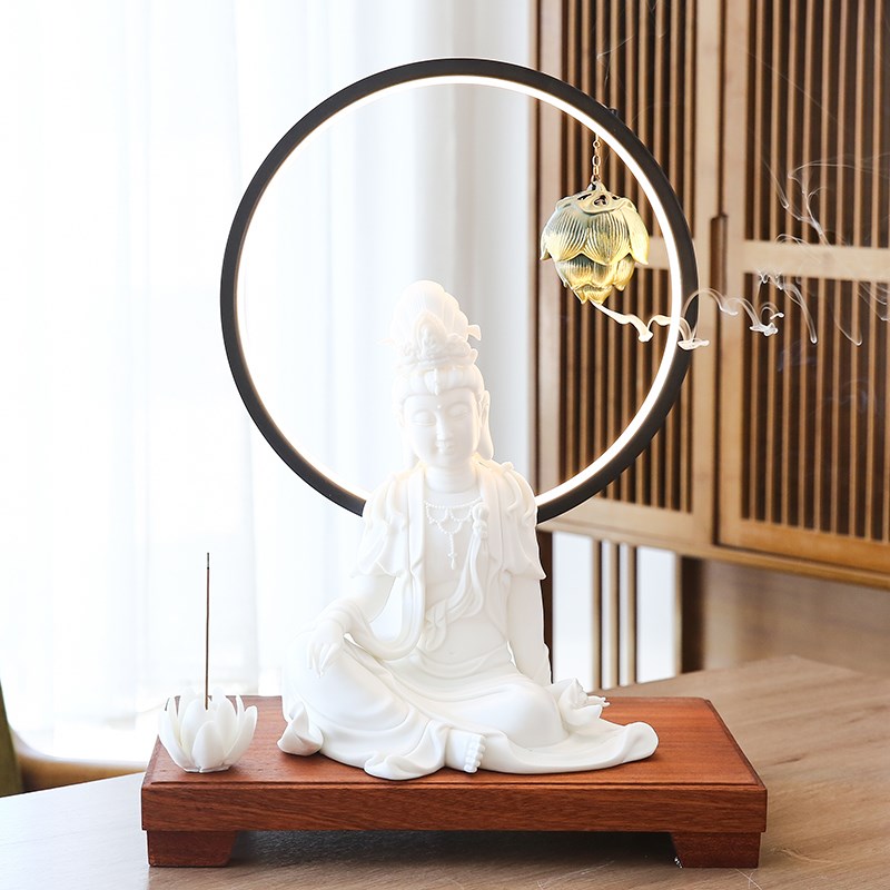 速发中式陶瓷世木禅意灯饰摆件创意厅流香炉家用客倒供奉观实音菩