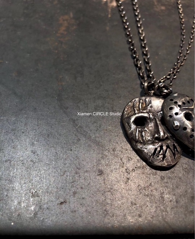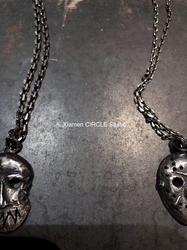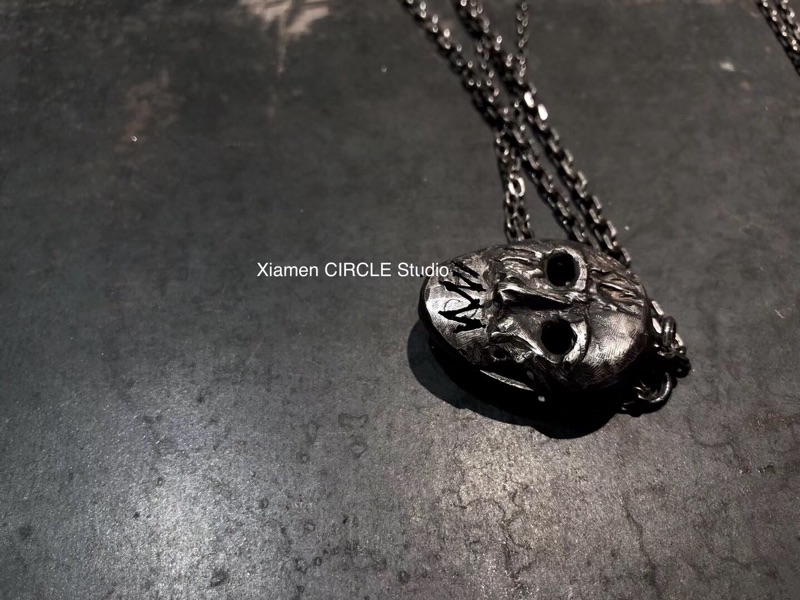 手工纯银面具鬼头小丑厂牌配饰嘻哈滑板rapper cos暗黑小众不规则