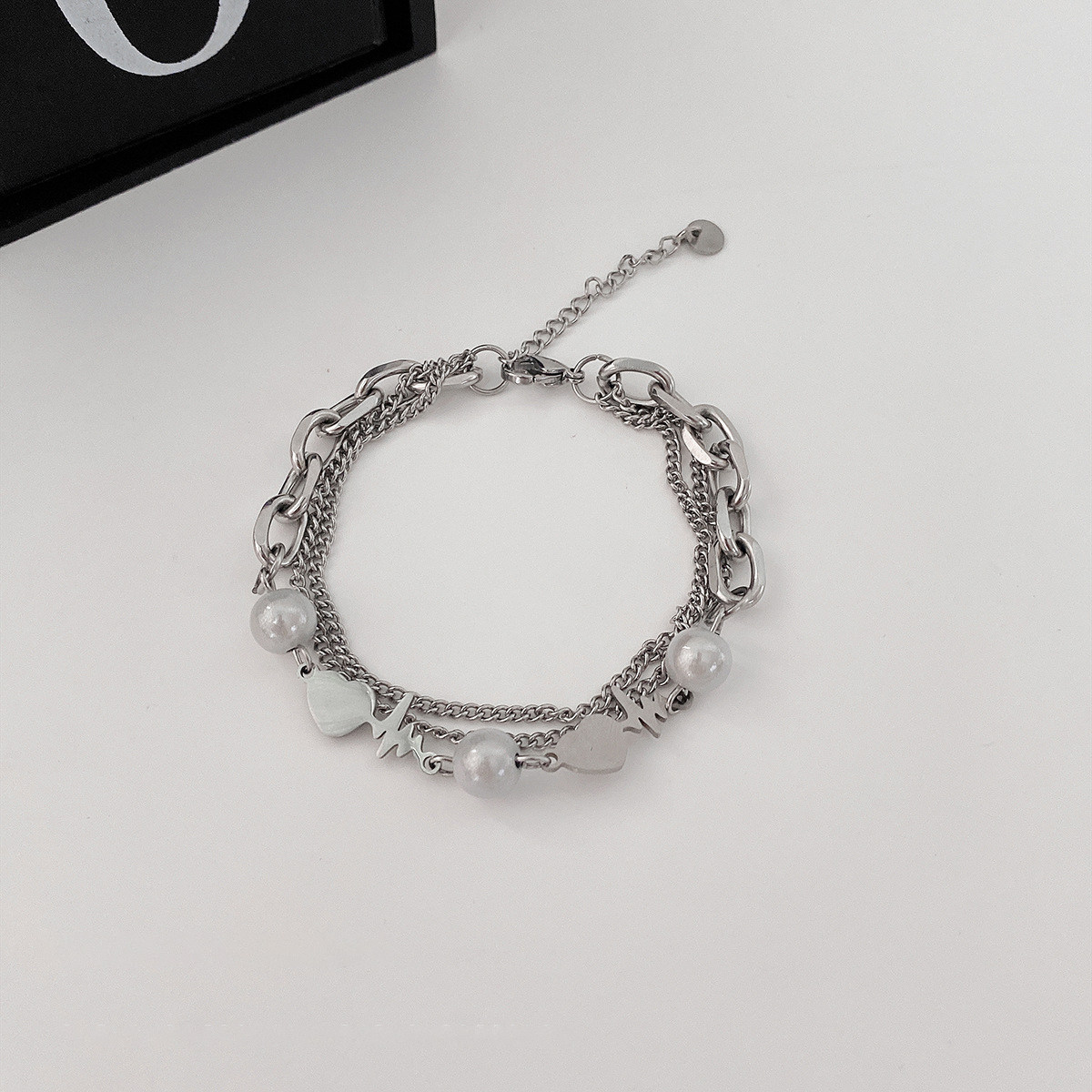 欧美嘻哈双层链条反光珍珠心电图爱心手链女ins小众设计感冷淡风