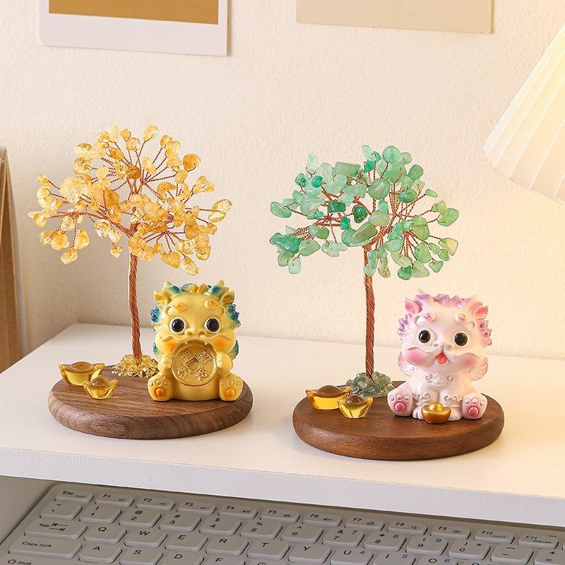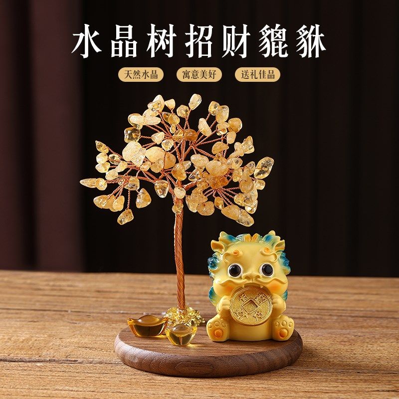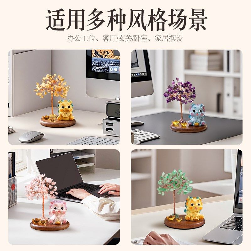 天然黄水晶发财树摆件紫水晶招财树办公室工位玄学桌面装饰品好物