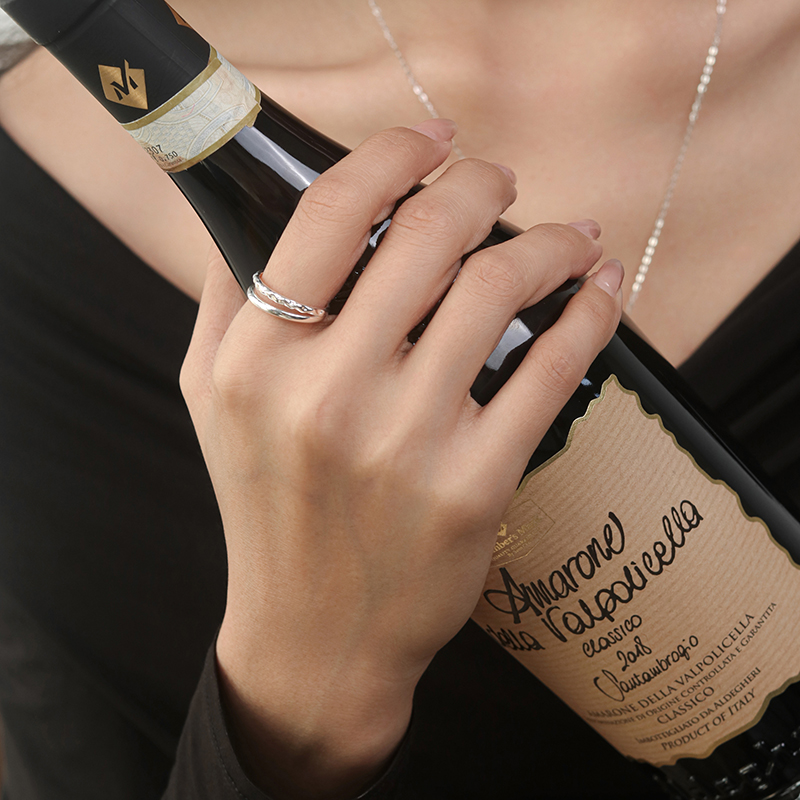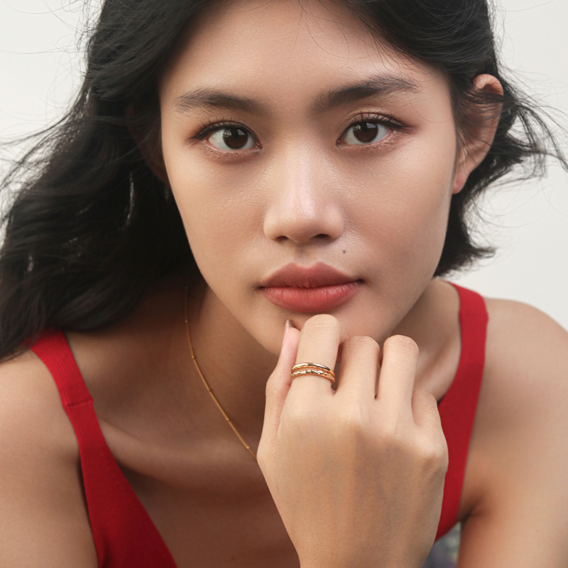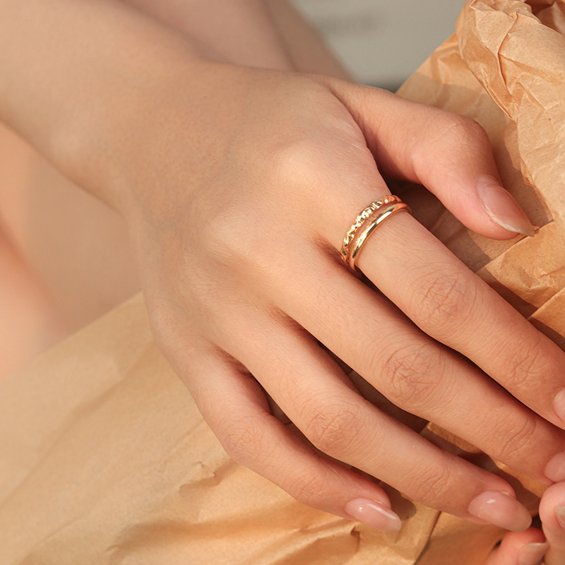 Moment 午后咖啡馆 双层纯银戒指开口小众设计轻奢高级感新款爆款