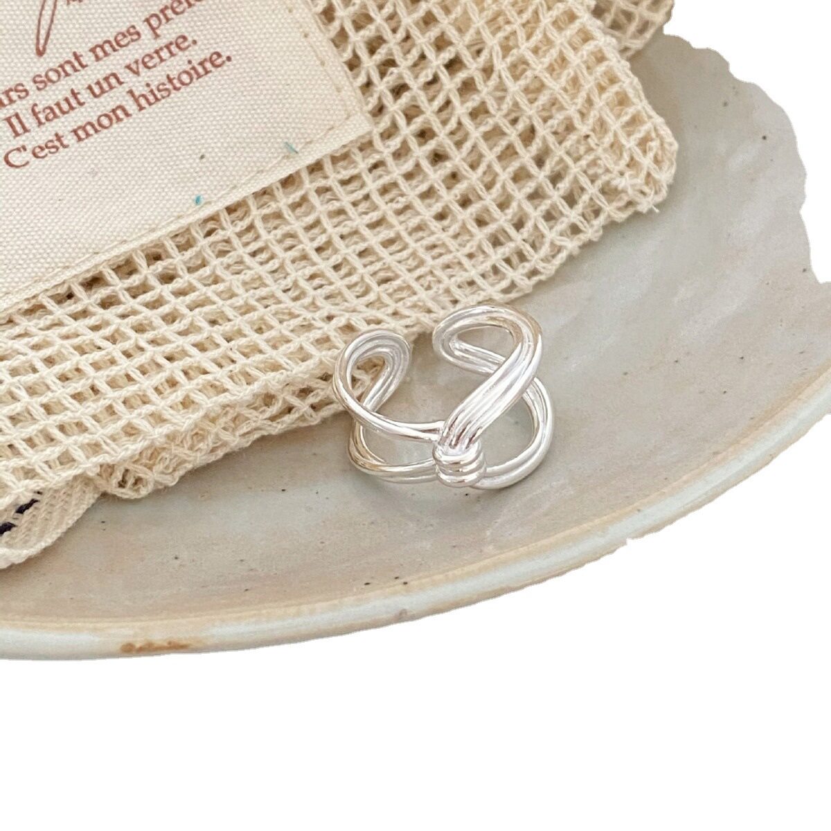 清仓特价开口可调节戒指女百搭时尚复古气质几何S925银开口食指环