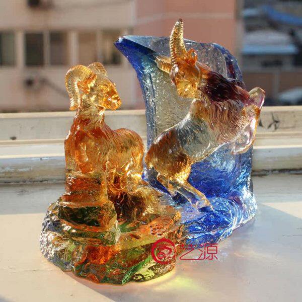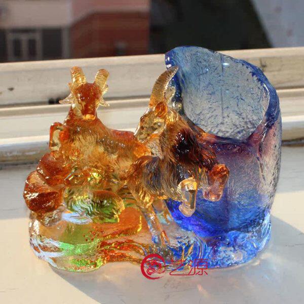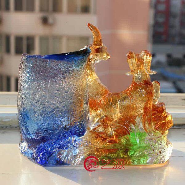 琉璃摆件三阳开泰笔筒创意家居饰品办公桌礼品送客户长辈生日礼物