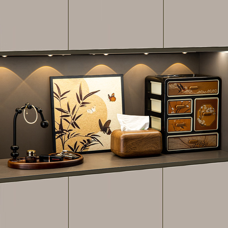 中古风小众入户玄关收纳盒家居轻奢家居桌面置物架布置摆件装饰品
