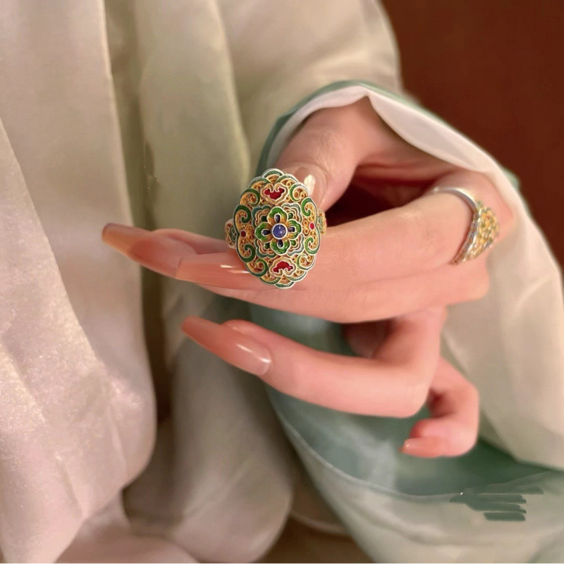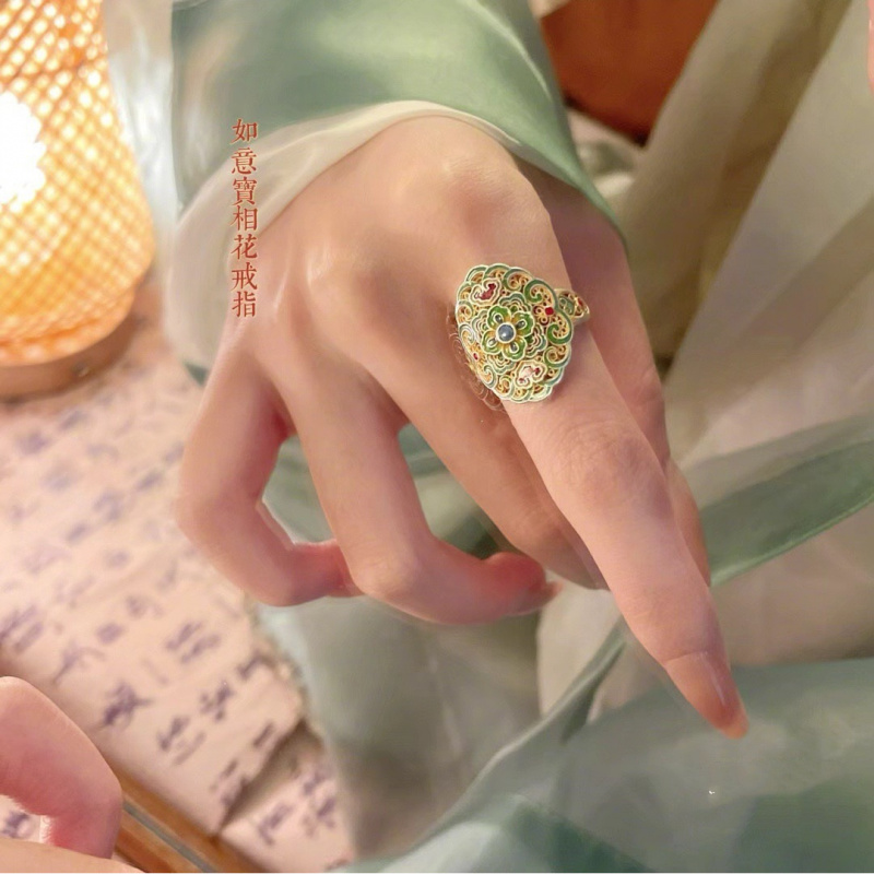 新款如意宝相花戒指女时尚百搭新中式开口指环送女友闺蜜