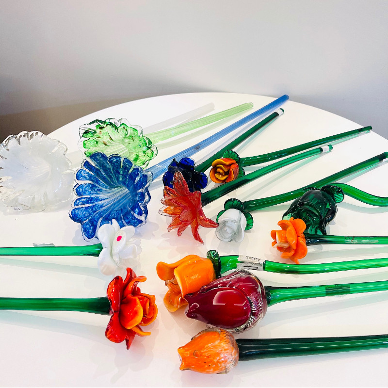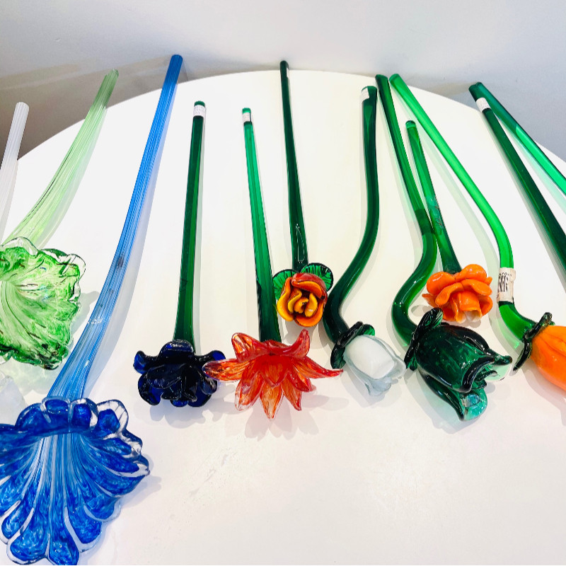 玻璃花朵外贸出口手工花样品精致匠人手作琉璃花杆克莱茵兰红黄色