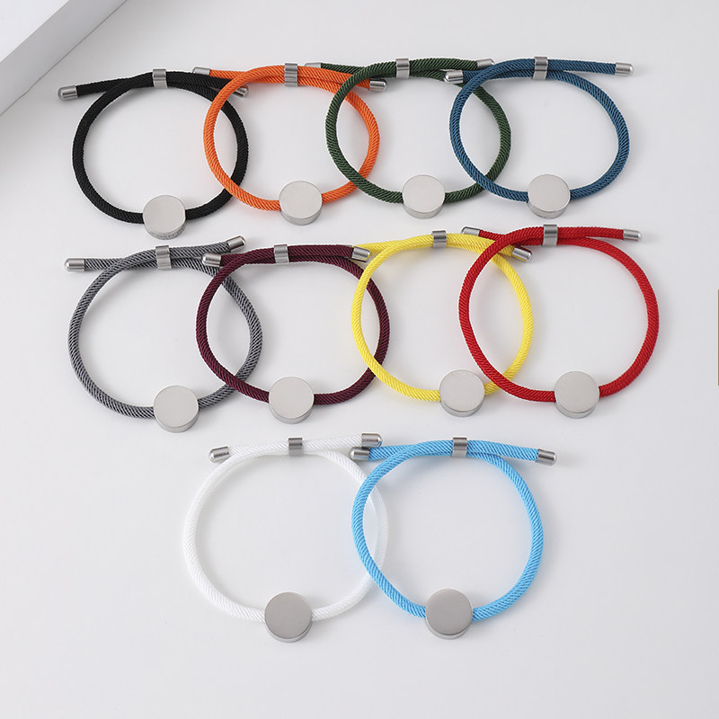 新款多色手环空白激光彩印材料跨境圆形挂坠可调节不锈钢手链男女