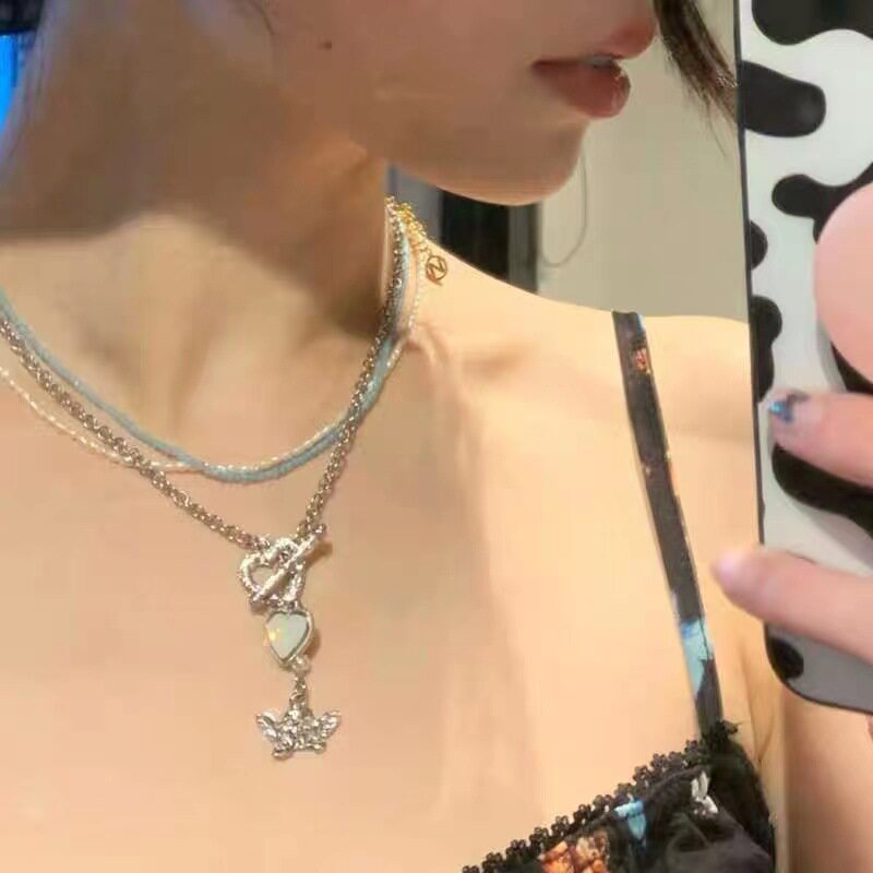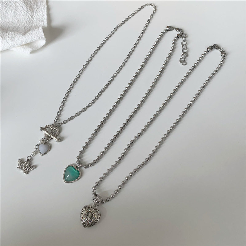 千亿少女#法式复古绿色爱心吊坠小天使爱心项链女钛钢网红锁骨链