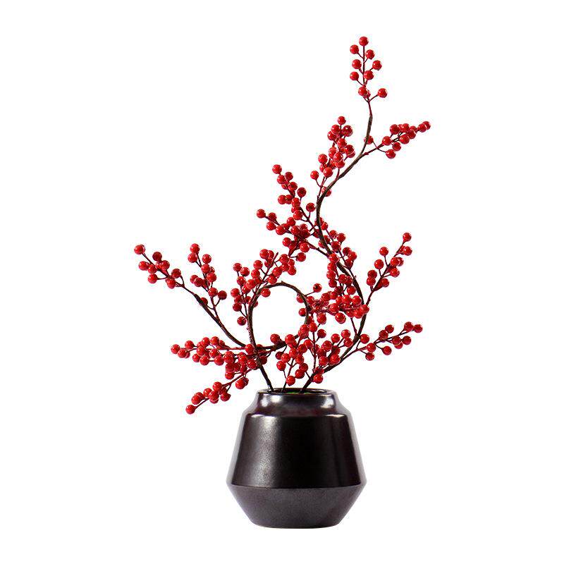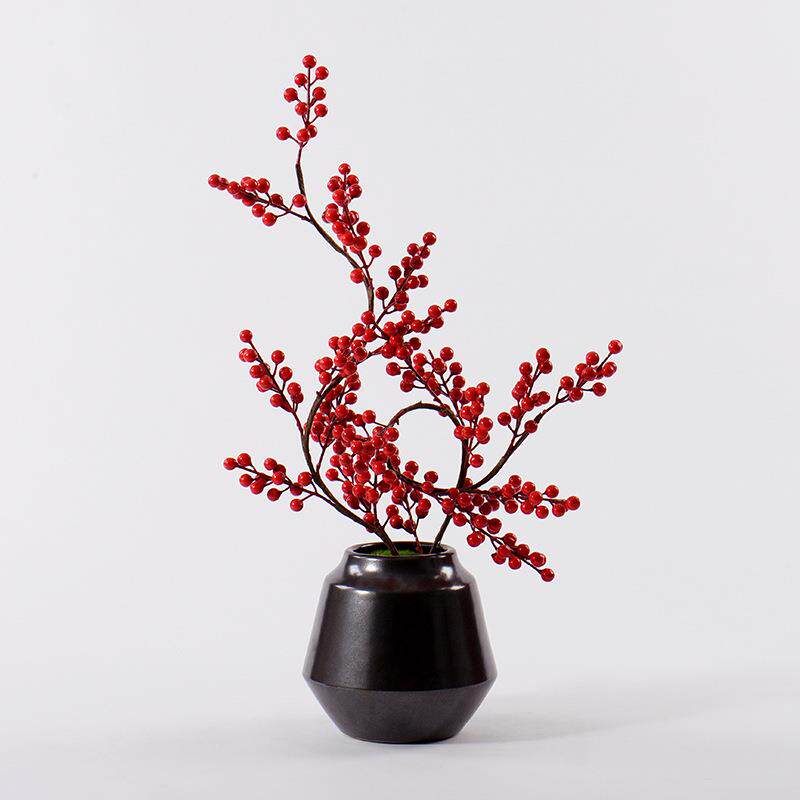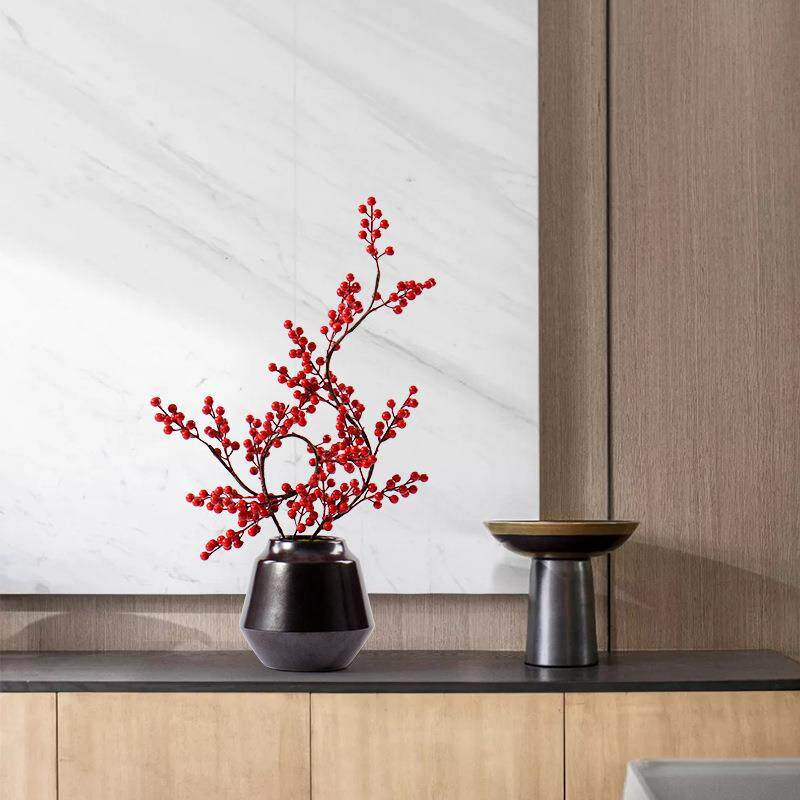 新中式盆景摆件茶几玄关售楼处酒店红色发财果餐饮桌花艺软装饰品