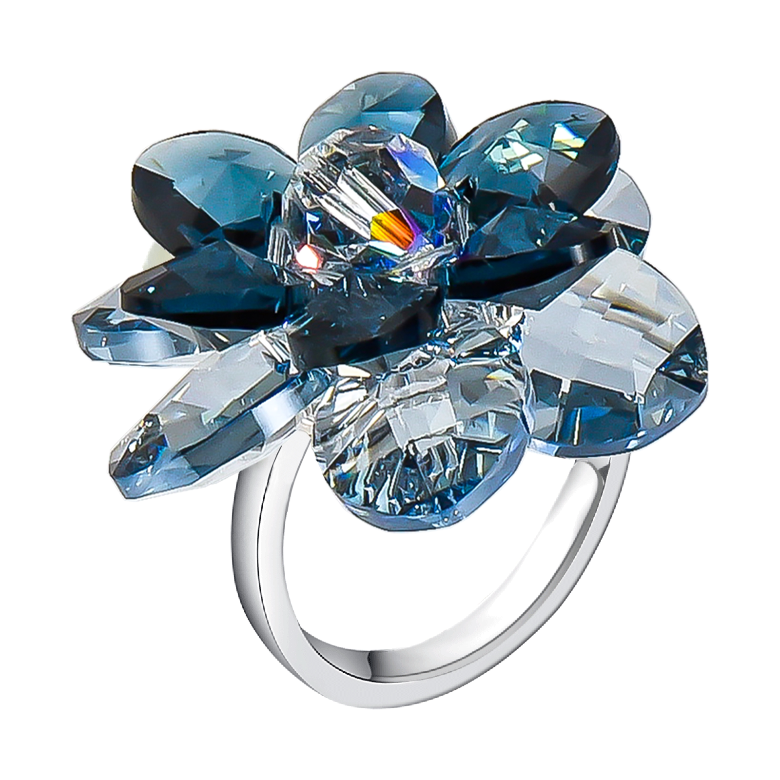 青衣行设计感蓝色水晶花朵戒指S925银指环时尚个性独特可调大小