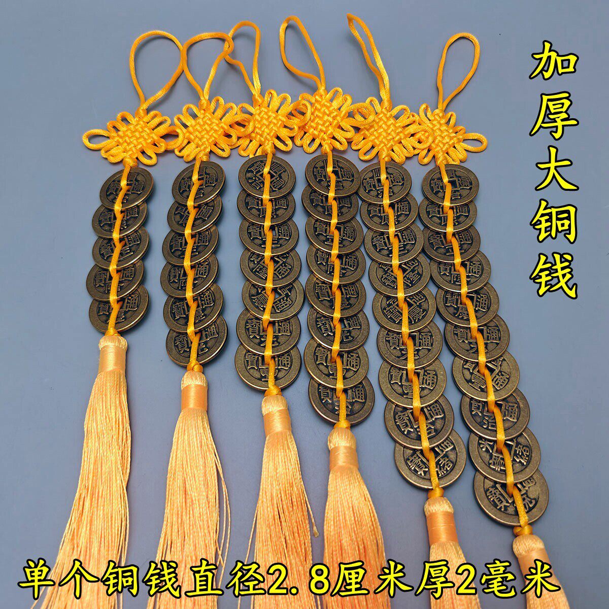 纯铜加厚六帝钱七八九十五帝钱中国结挂件门对门五黄二黑黄色红绳