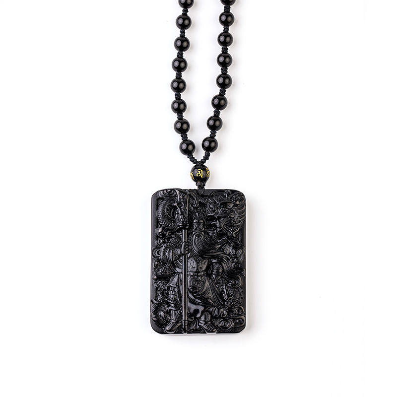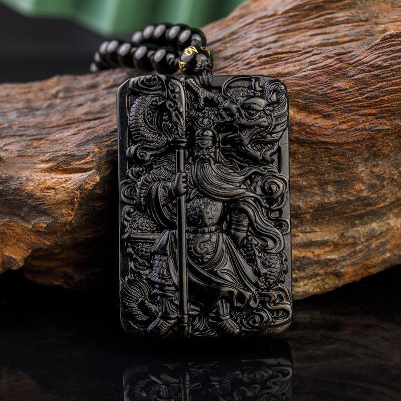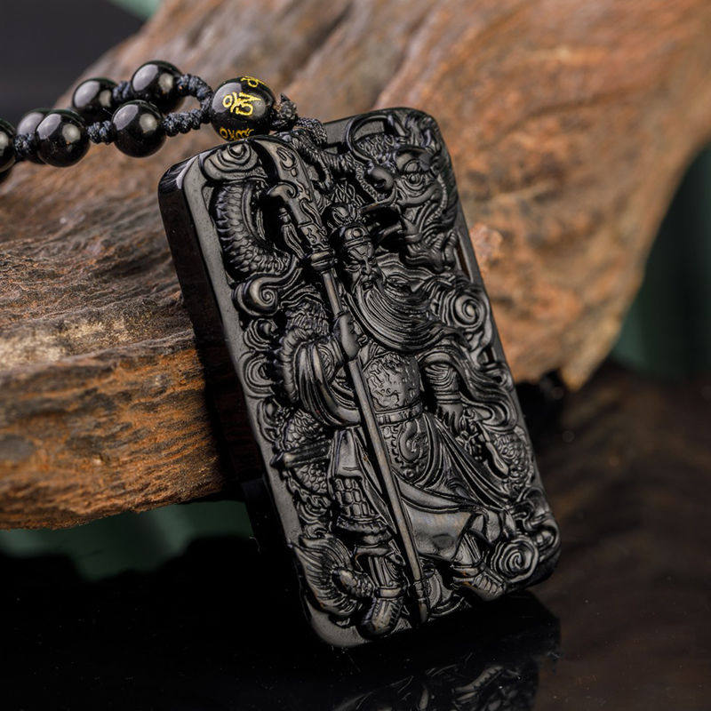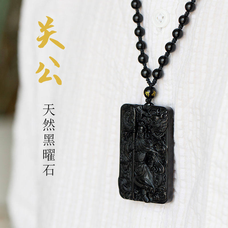 走进东非鹏飞珠宝男士黑曜石关公吊坠武财神关二爷男女款高档精雕