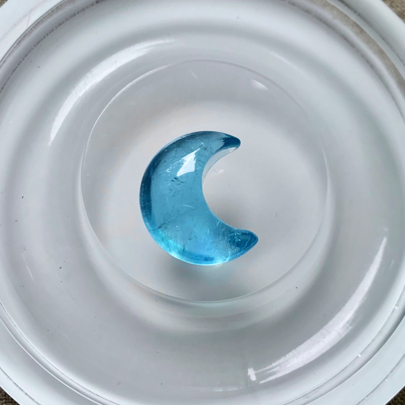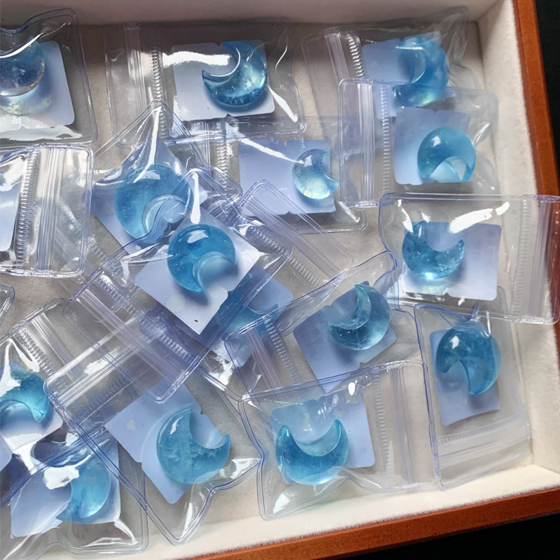 天然海蓝宝月亮吊坠蓝色雕刻件透润猫眼随形一物一图情侣礼物男女