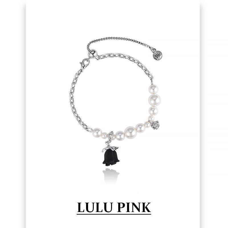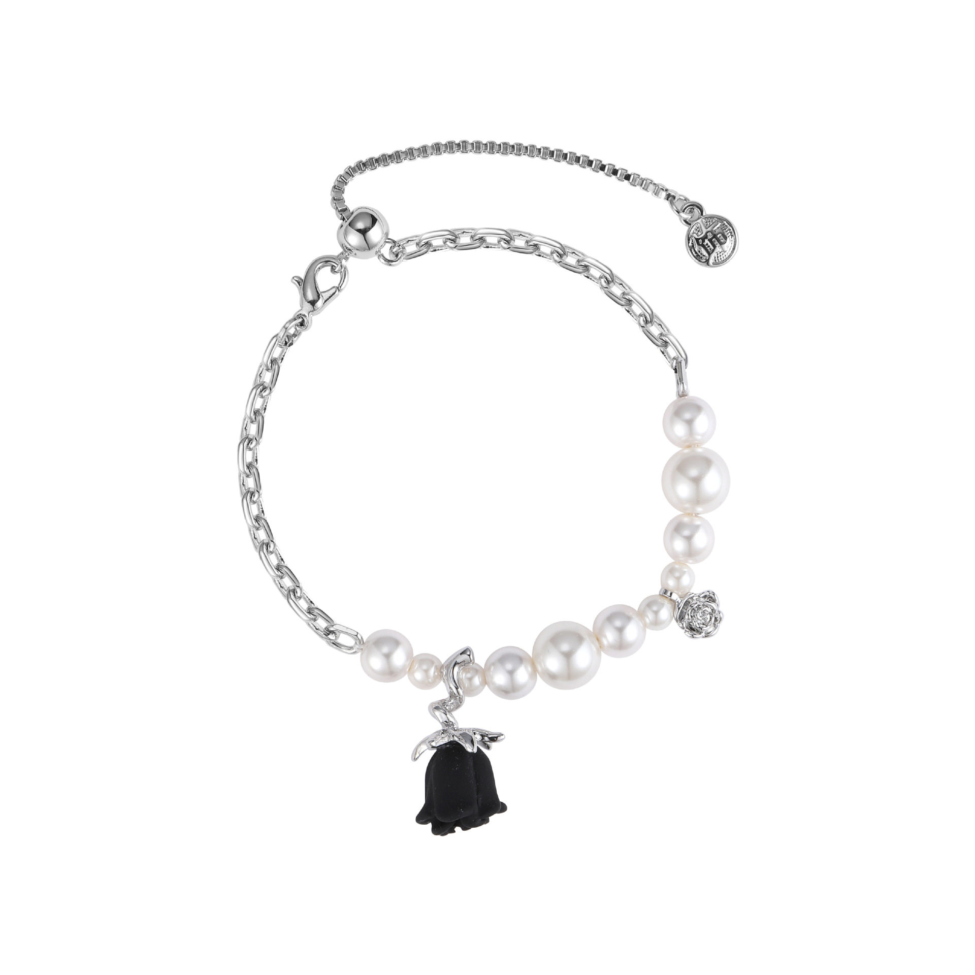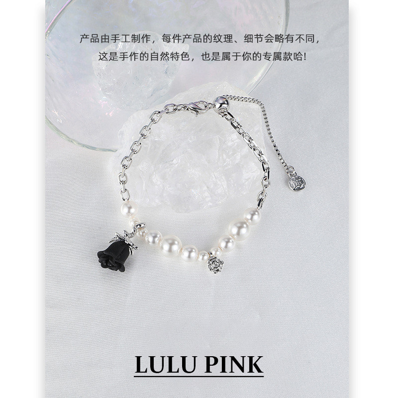 小众设计ins甜酷风黑色玫瑰珍珠手链复古高级感轻奢百搭手串手链