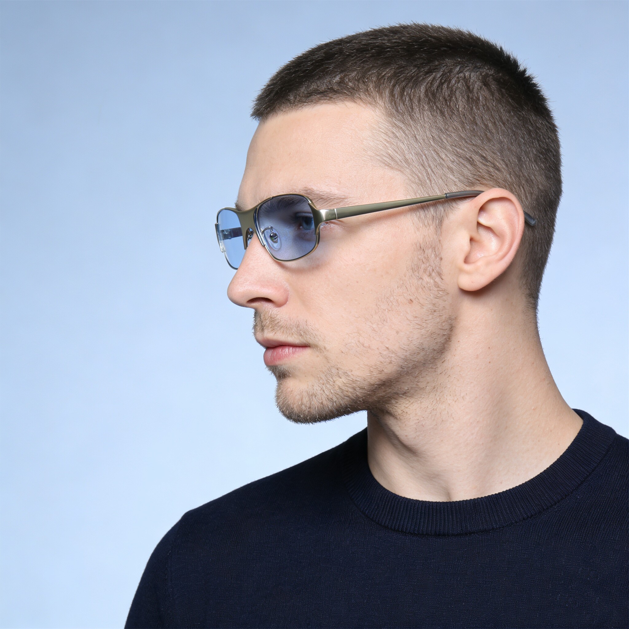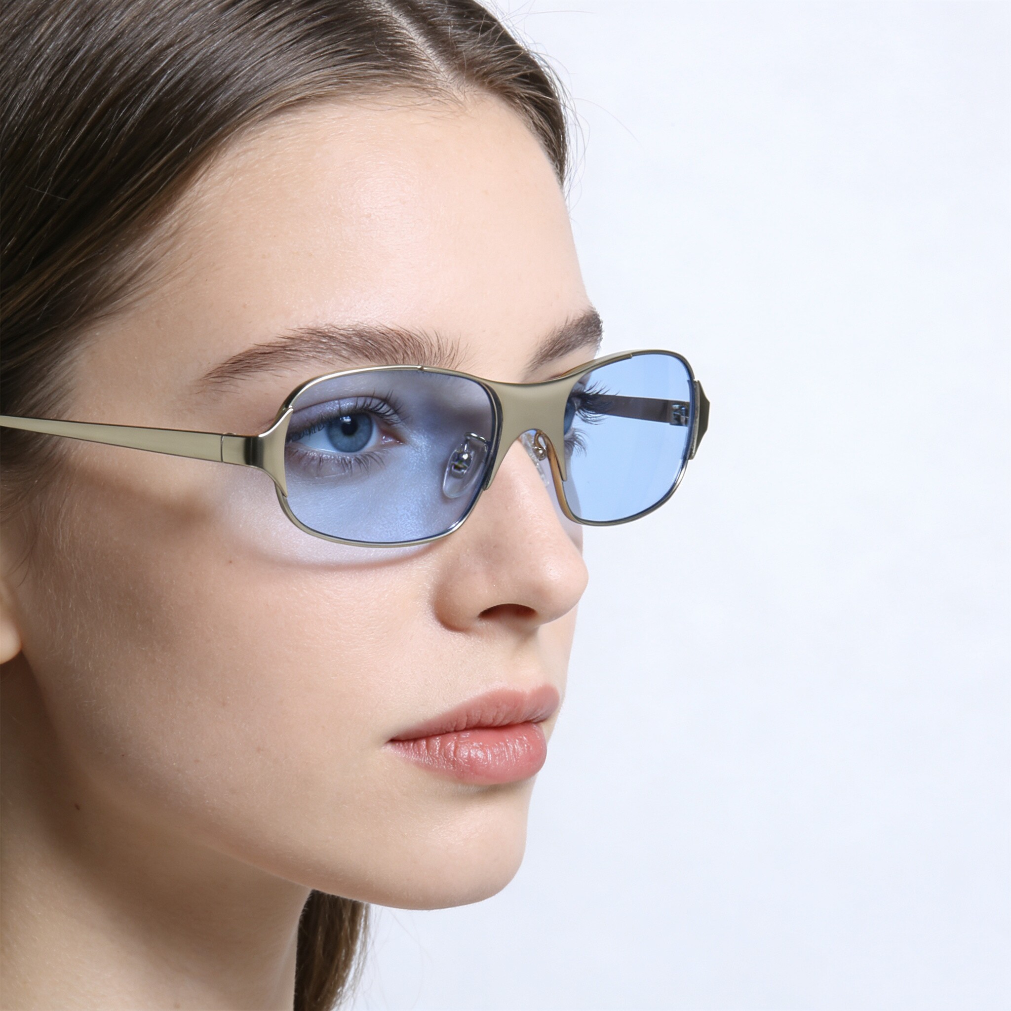 朋克风格金属框蓝色太阳眼镜UV400防紫外线防晒可配近视眼镜