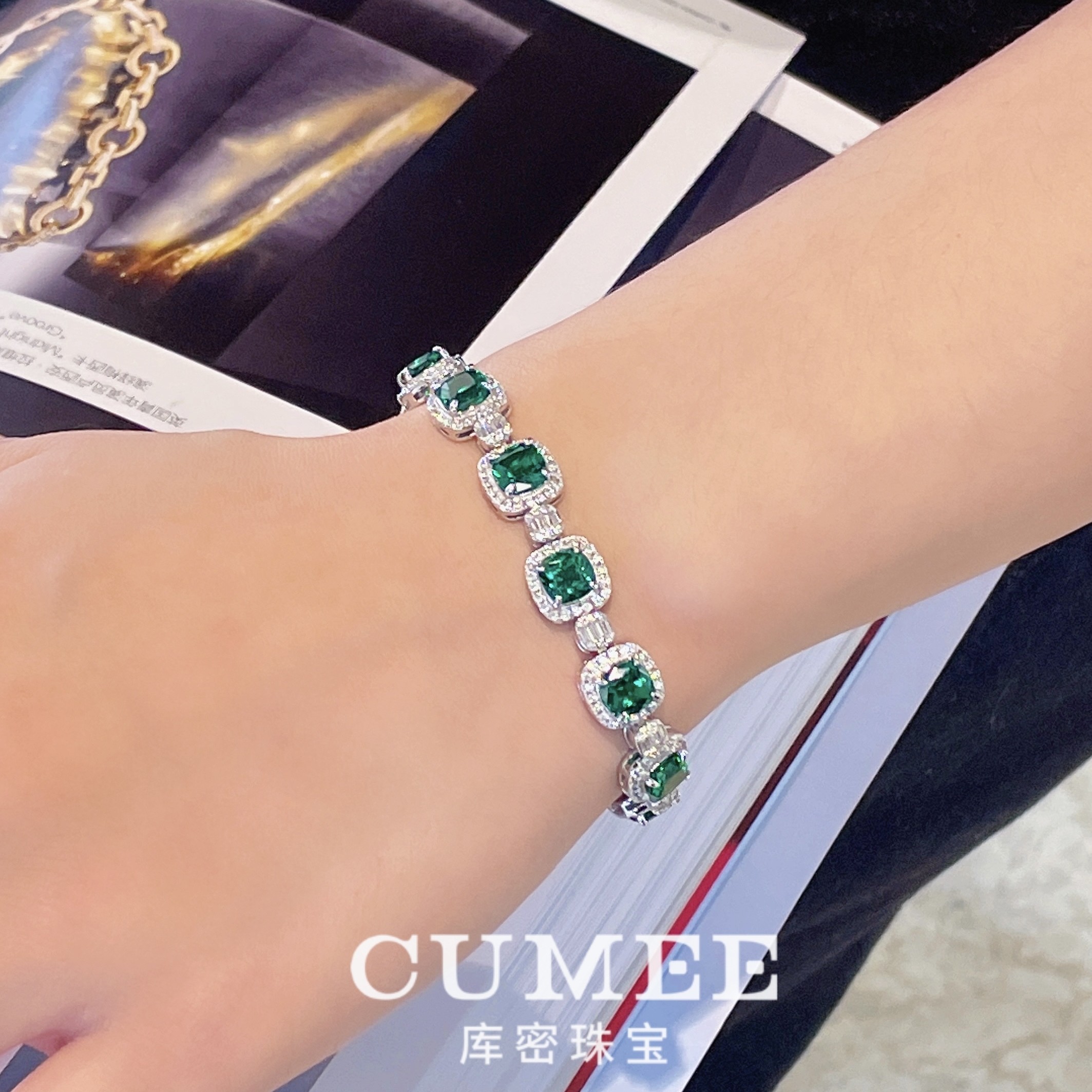 CUMEE 公主方 精致欧式设计款合成祖母绿色手链.银镀金