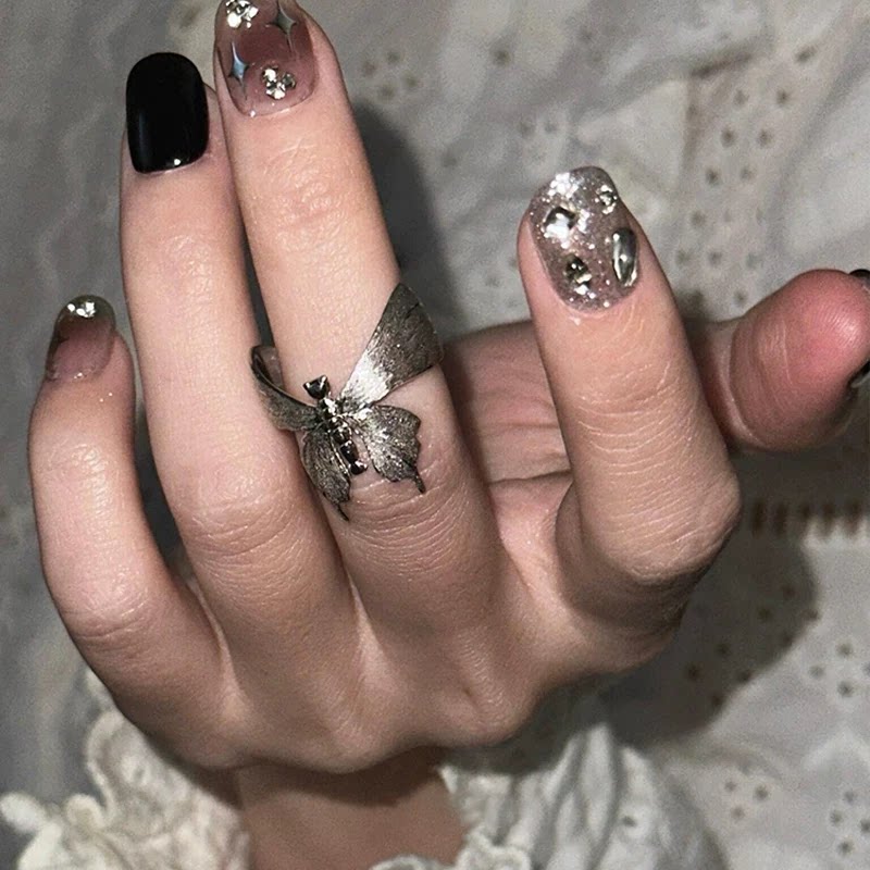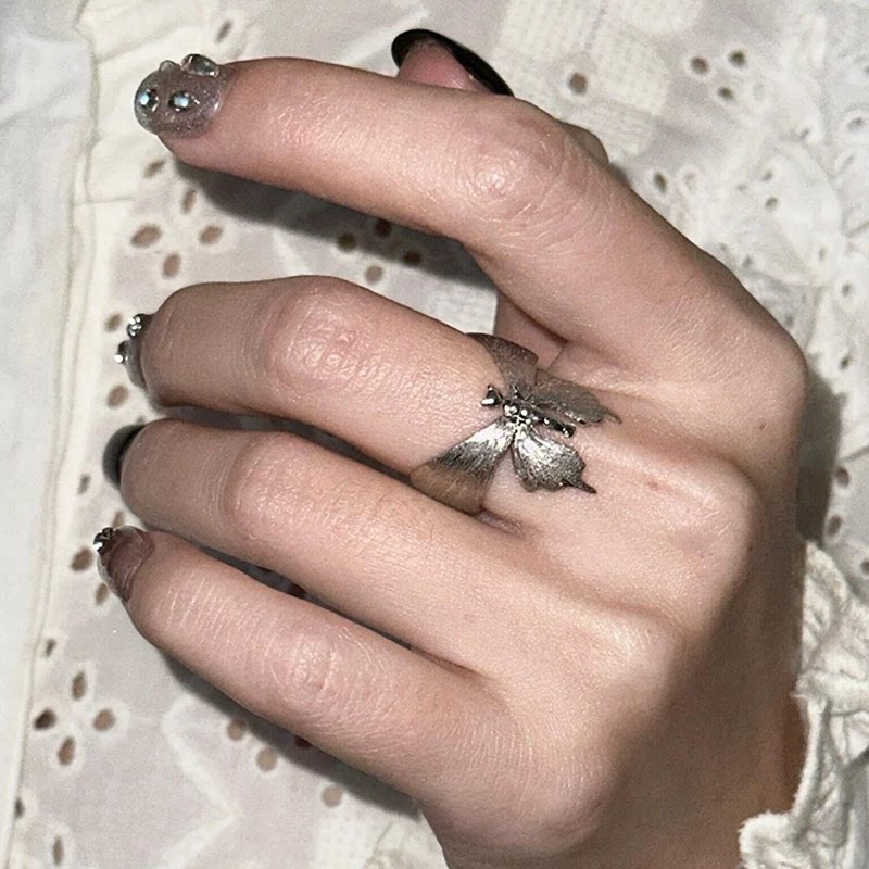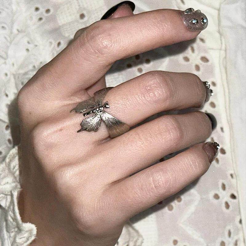 银色拉丝蝴蝶戒指女小众设计轻奢高级感食指戒清冷感气质开口指环