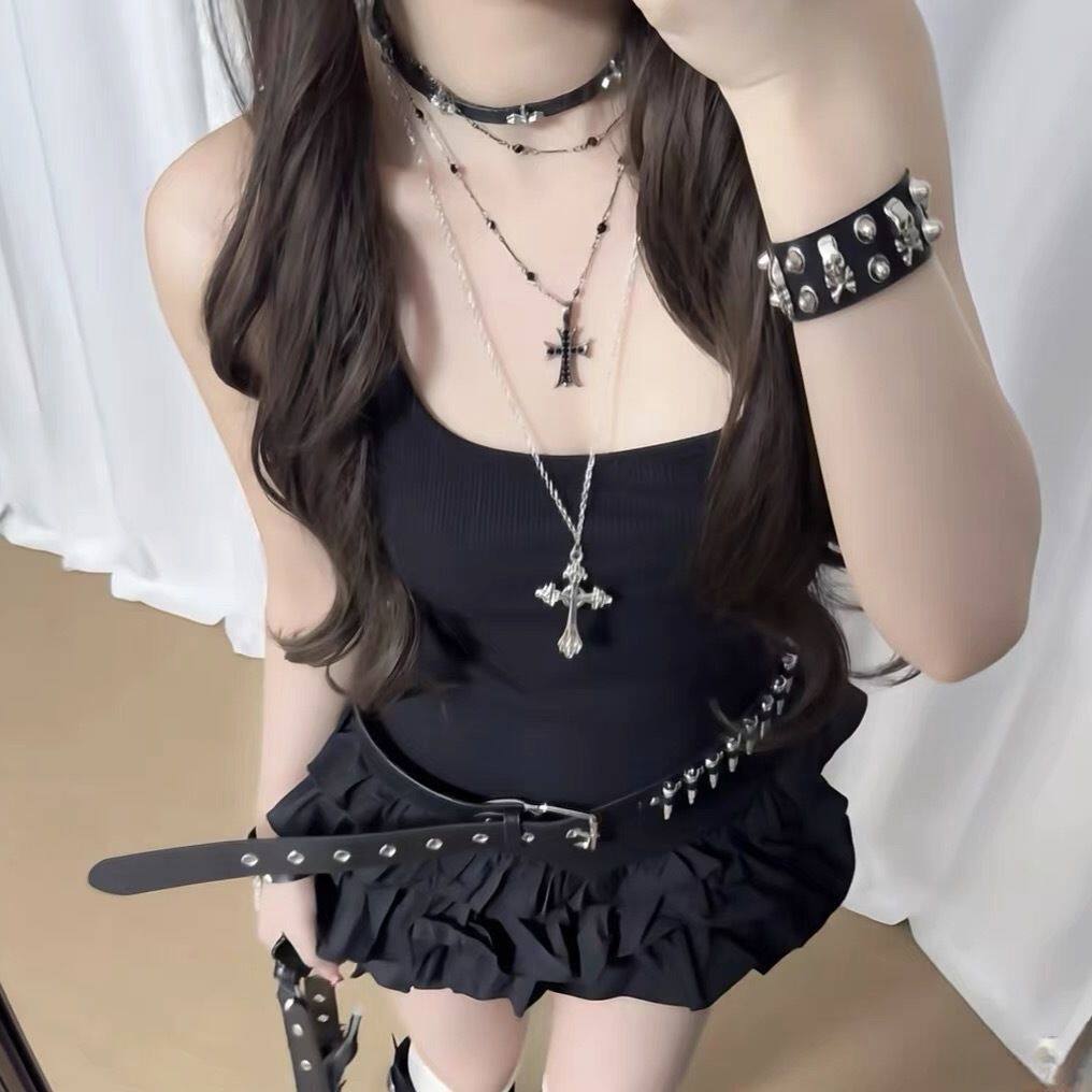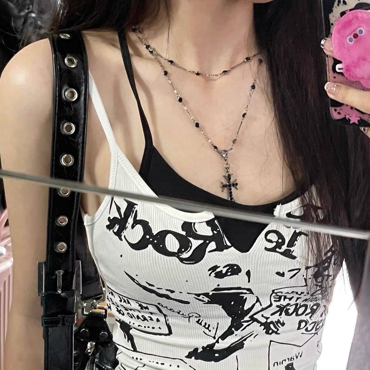 y2k千禧轻多层十字架项链甜酷辣妹配饰锁骨链choker黑色双层朋克