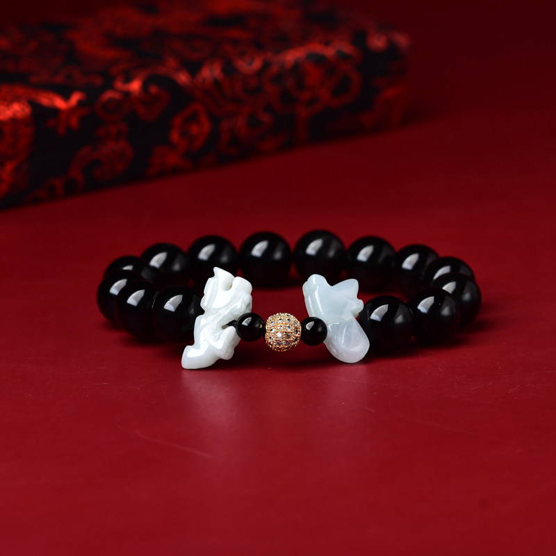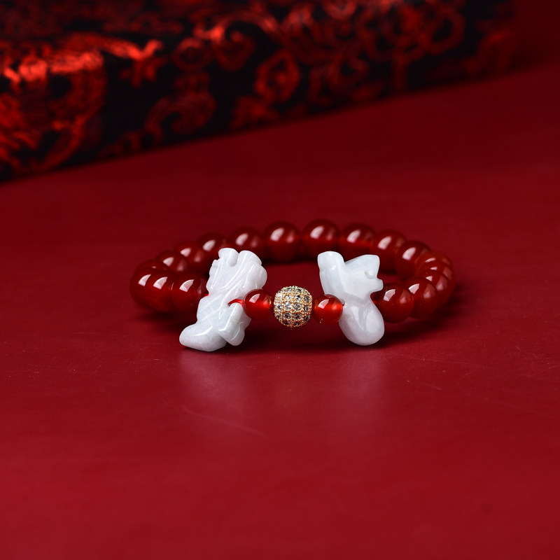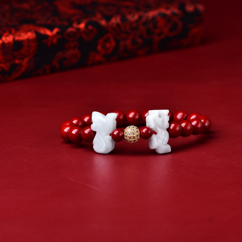 属猴人三合通宝吉贵宏神将翡翠红绳手链2026年鼠形加龙形生肖猴