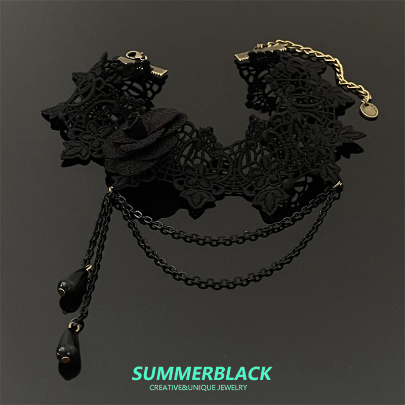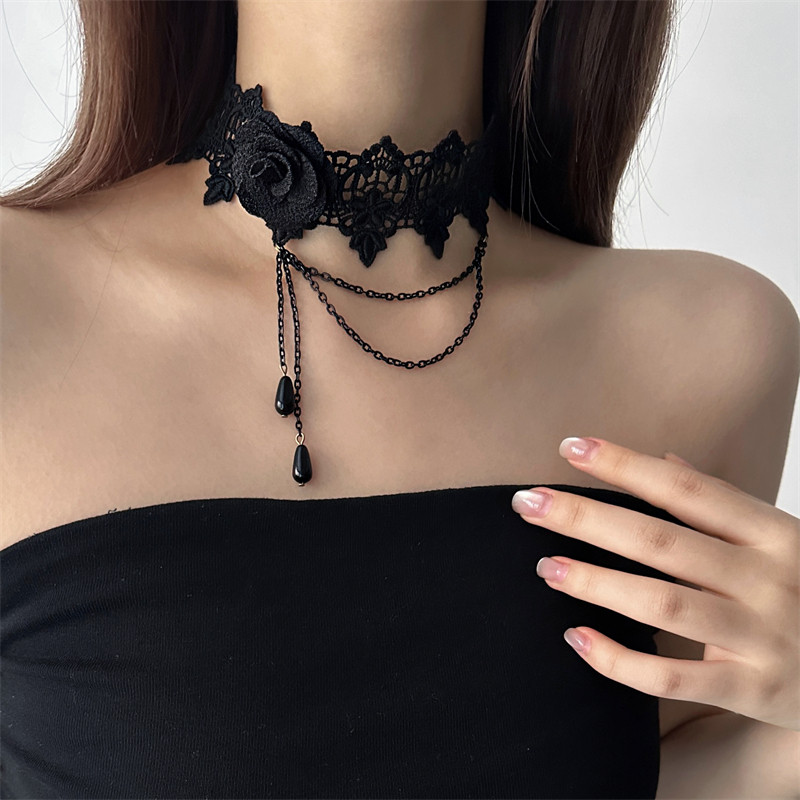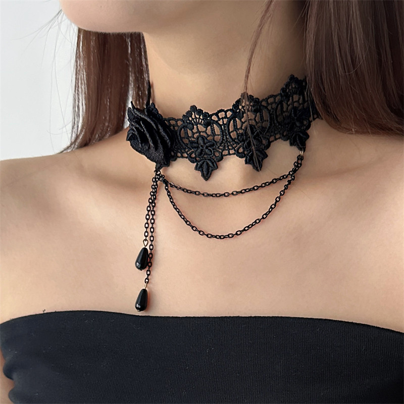 哥特风黑色蕾丝花朵chocker女颈带lolita脖子配饰项链颈链锁骨链