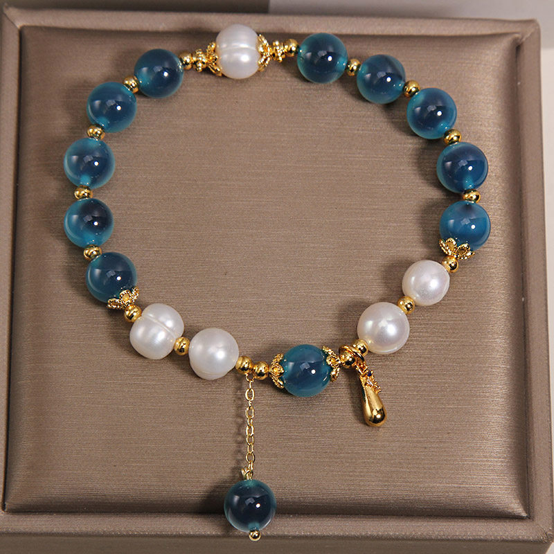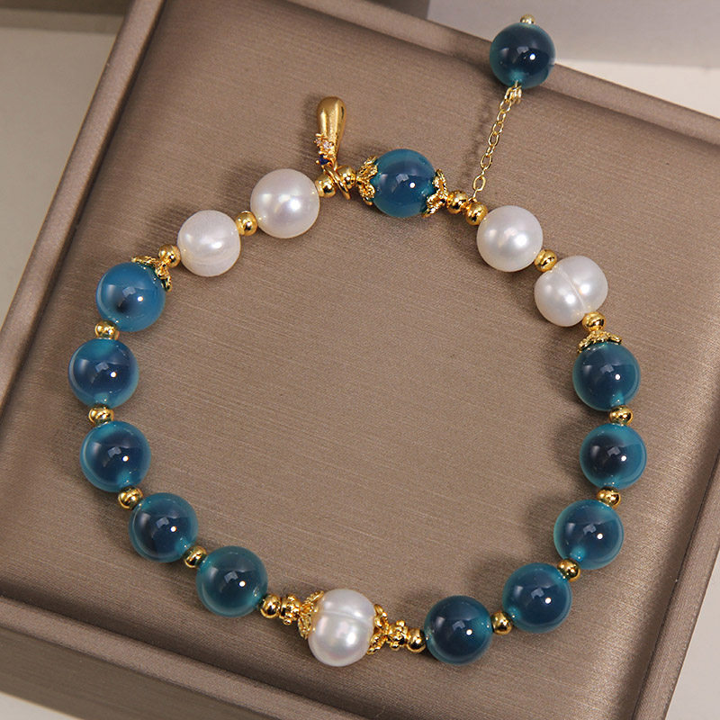 新中式蓝色糖心玛瑙手链女轻奢小众高级感显白珍珠手串送闺蜜礼物