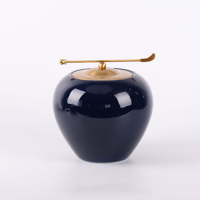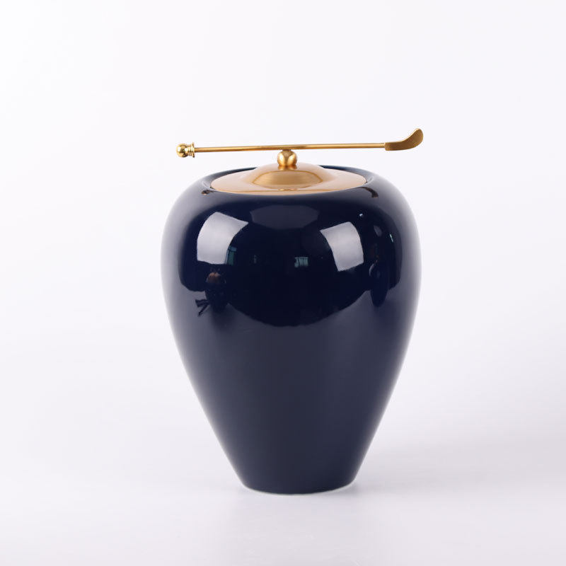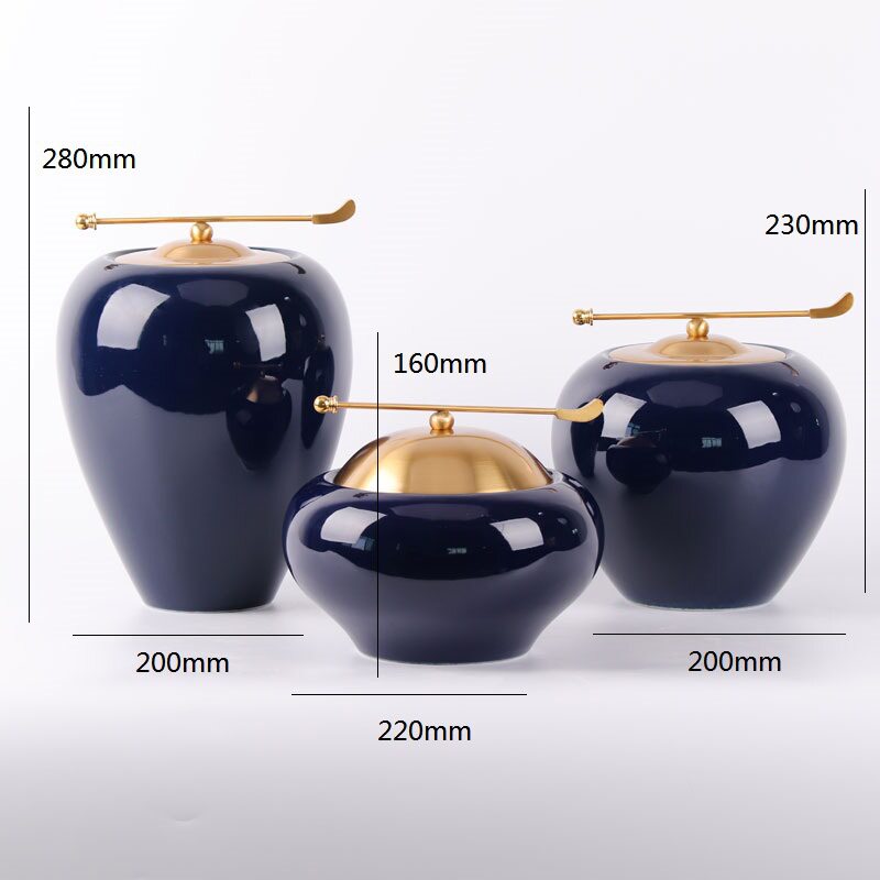 新中式样板间摆件客厅玄关茶几电视柜装饰品蓝色陶瓷罐软装工艺品
