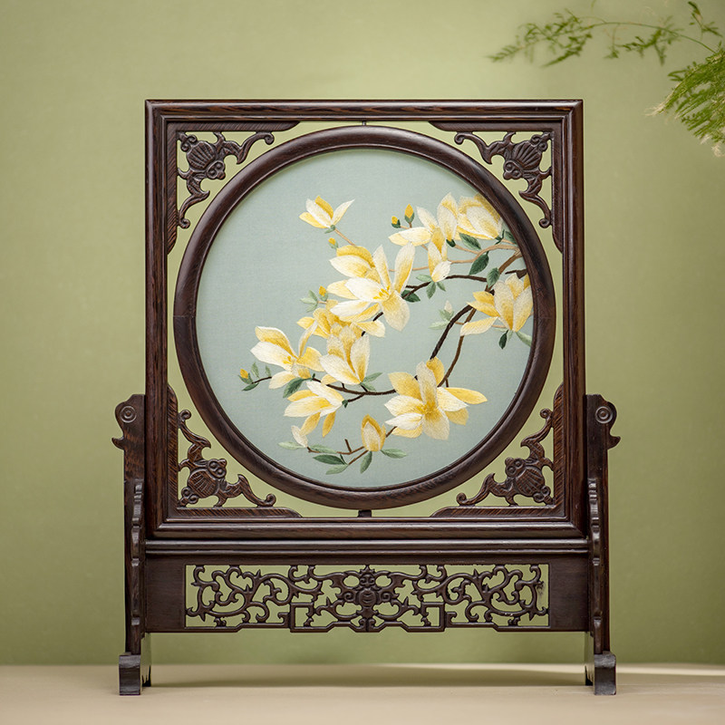 苏州刺绣摆件台屏双面绣实木纯手工苏绣屏风两面创意送礼礼品摆台