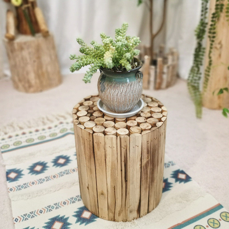 实木小圆凳花架网红民宿装饰客厅侘寂风格庭院花园幼儿园装饰道具