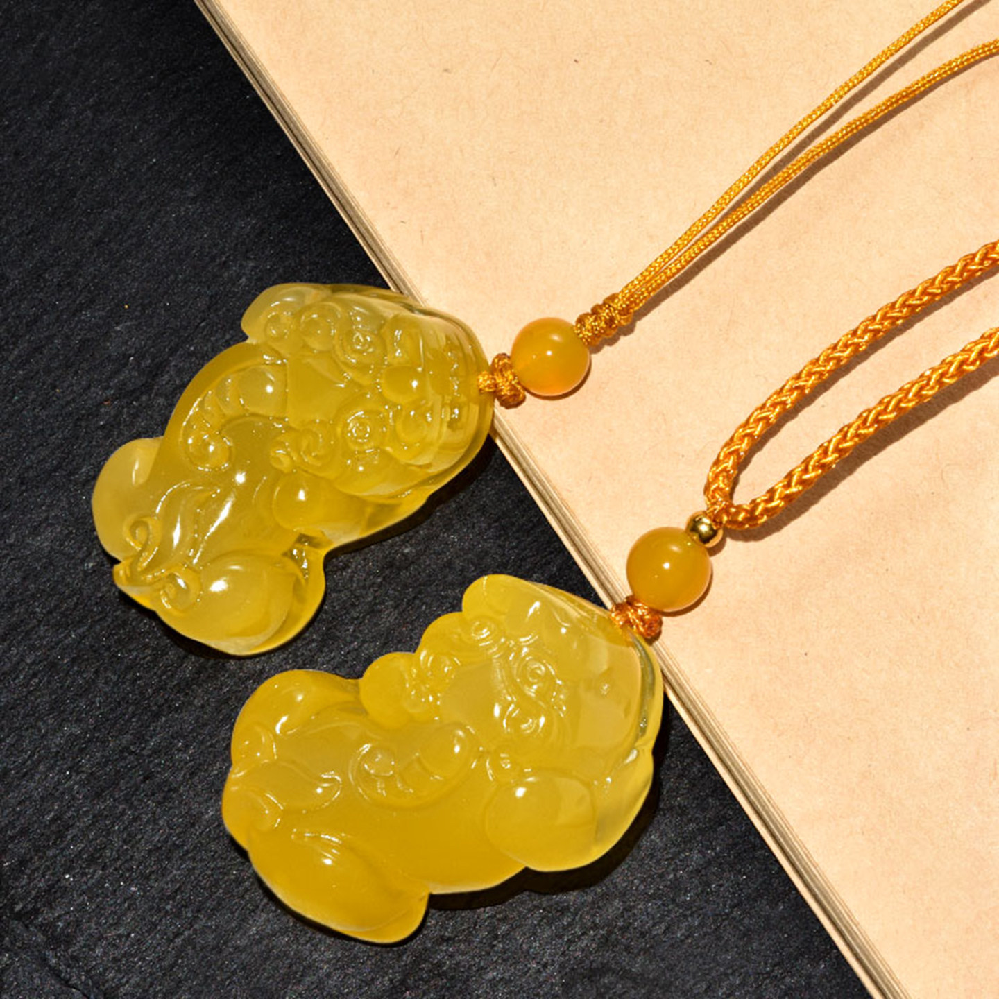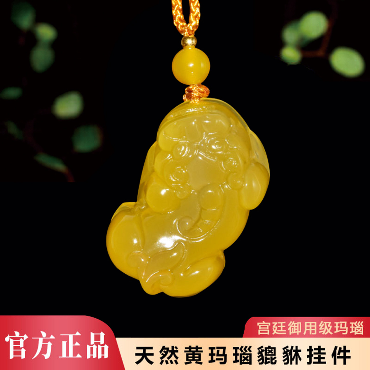 天然黄玉髓貔貅吊坠女玛瑙皮丘项链男黄色水晶玉石挂件饰品礼物