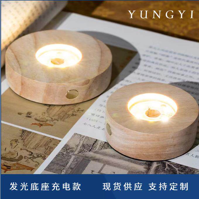 发光底座充电款实木led灯座床头小夜灯无火香薰琉璃产品创意雕刻