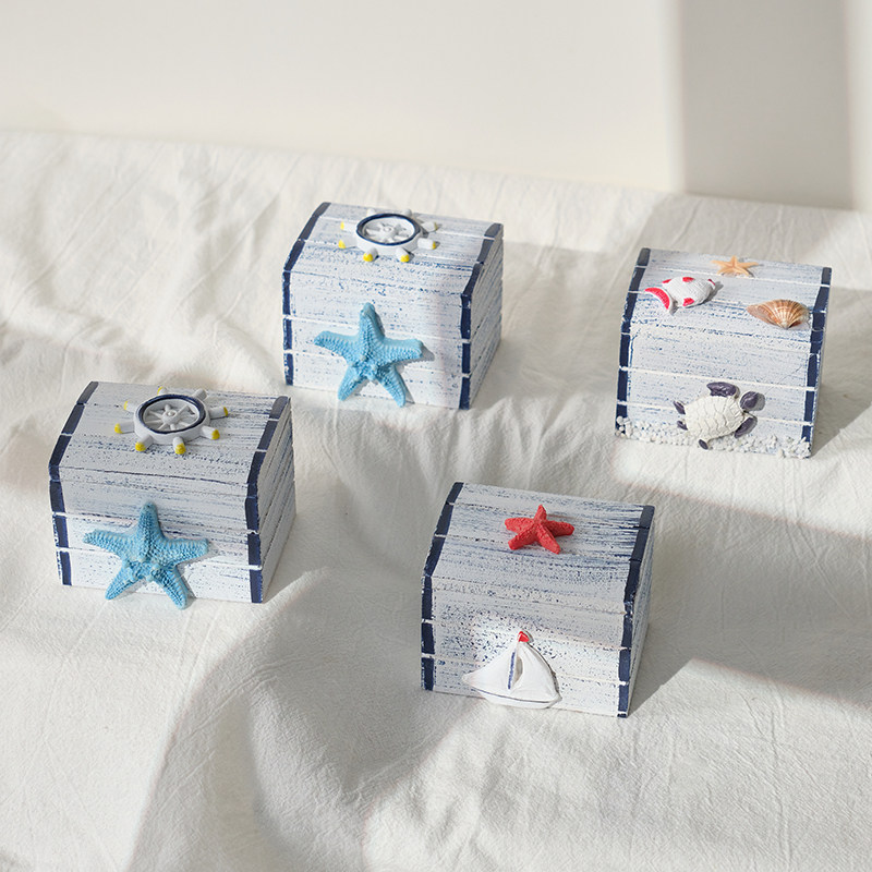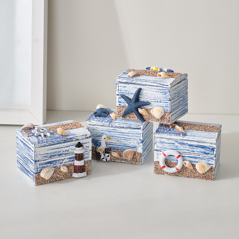 海洋风海底小木箱装饰摆件地中海风格沙滩小盒子创意摆台道具摆设