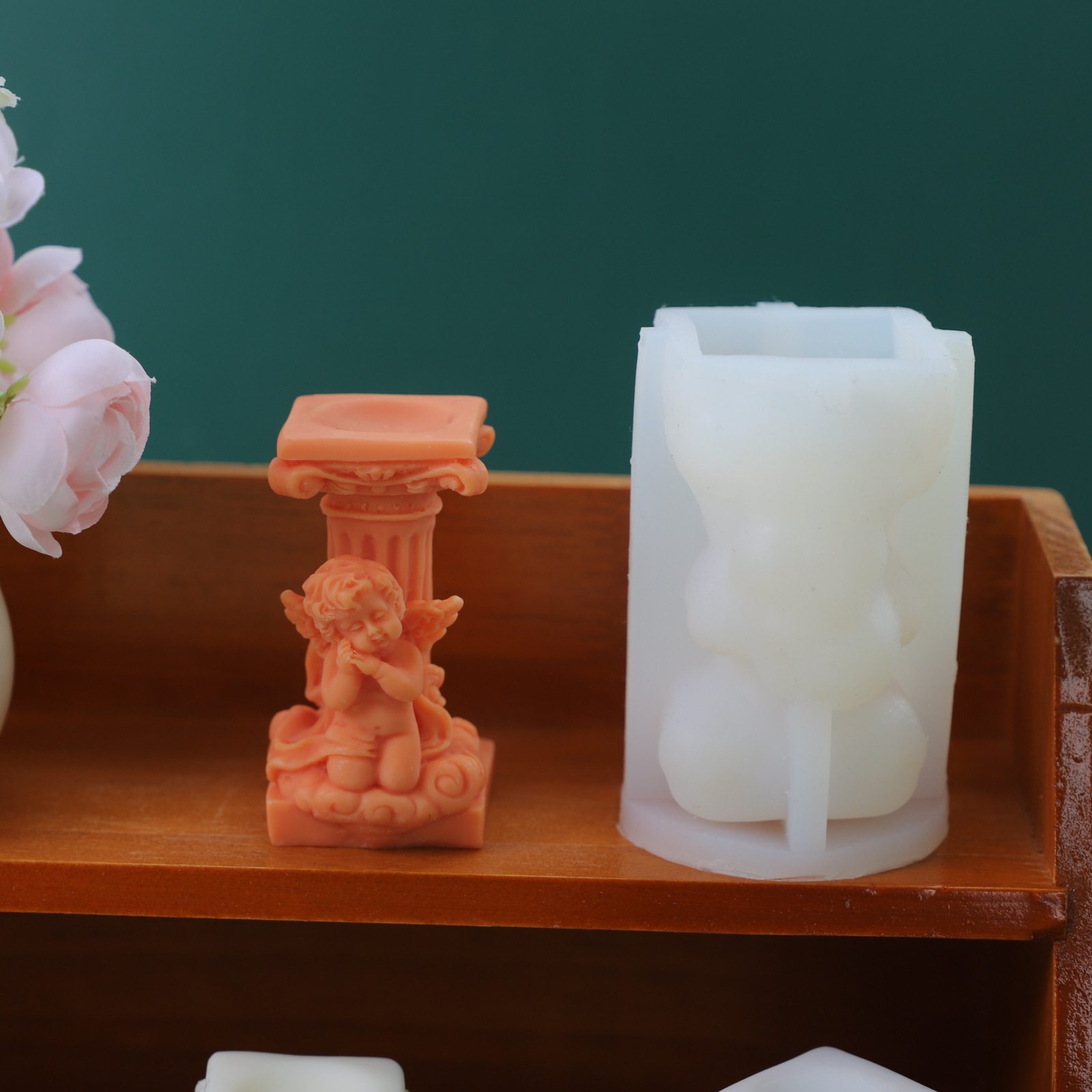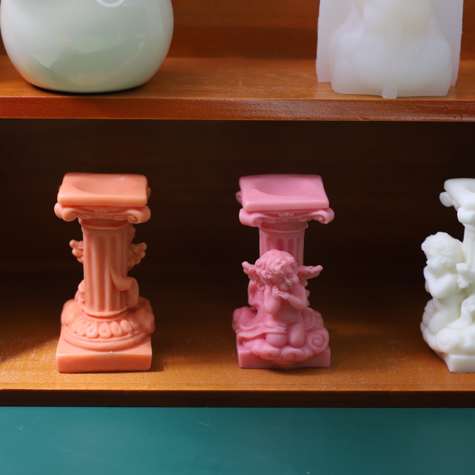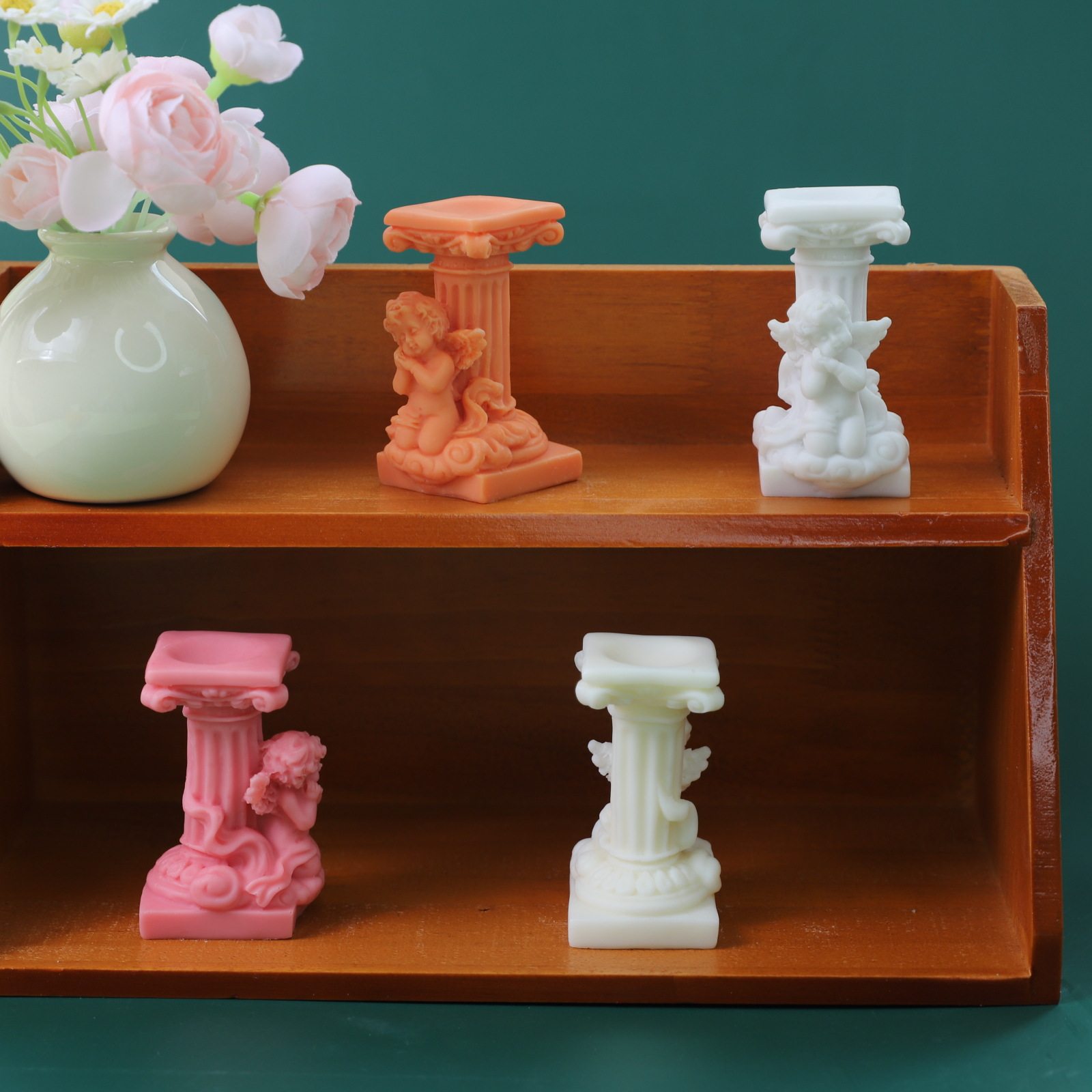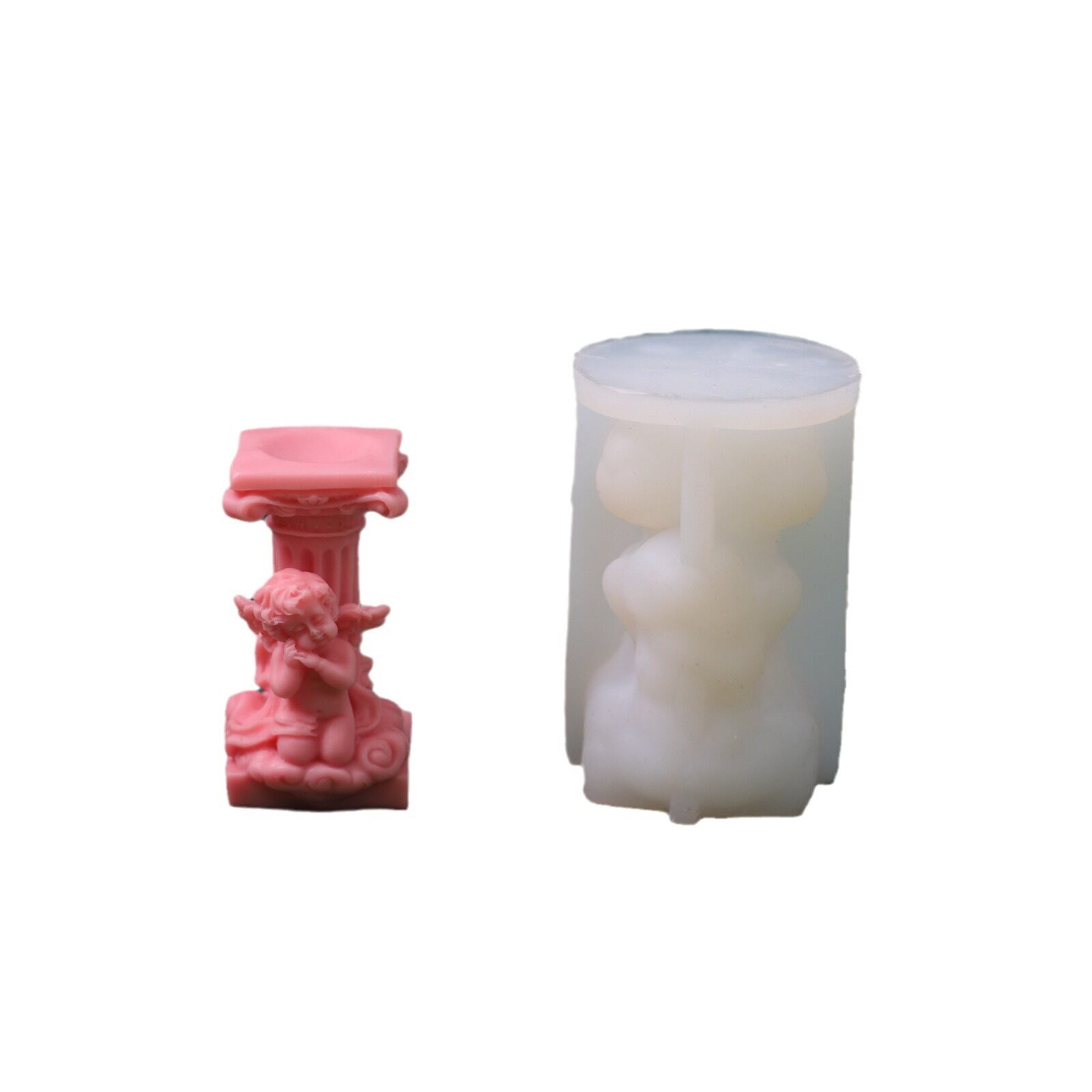 古典罗马柱蜡烛模具DIY香薰石膏家居装饰摆件天使硅胶模具