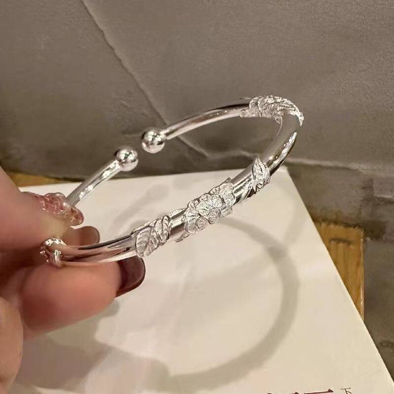 锌合金镀银仿古手镯女生古风手镯手饰繁花镯子实心镯子女孩礼物