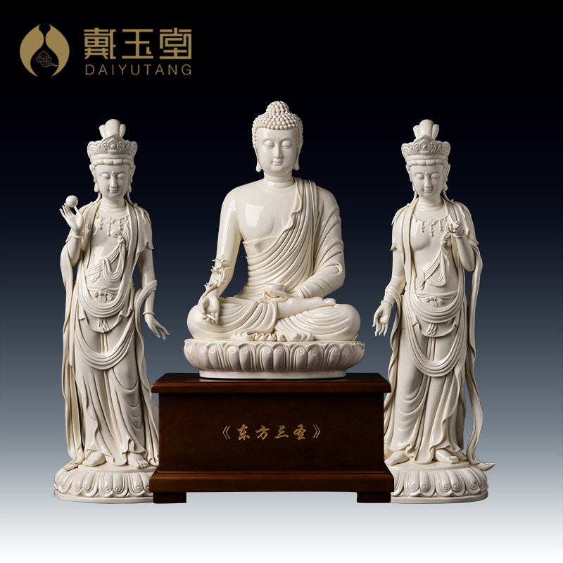 新品东方三圣日光月光菩萨像佛A像供奉家用药师佛陶瓷摆件仿古瓷