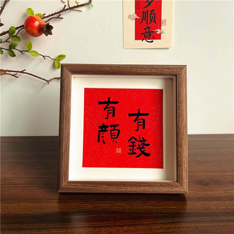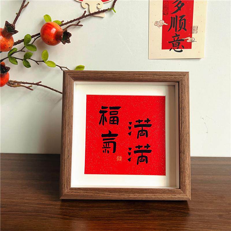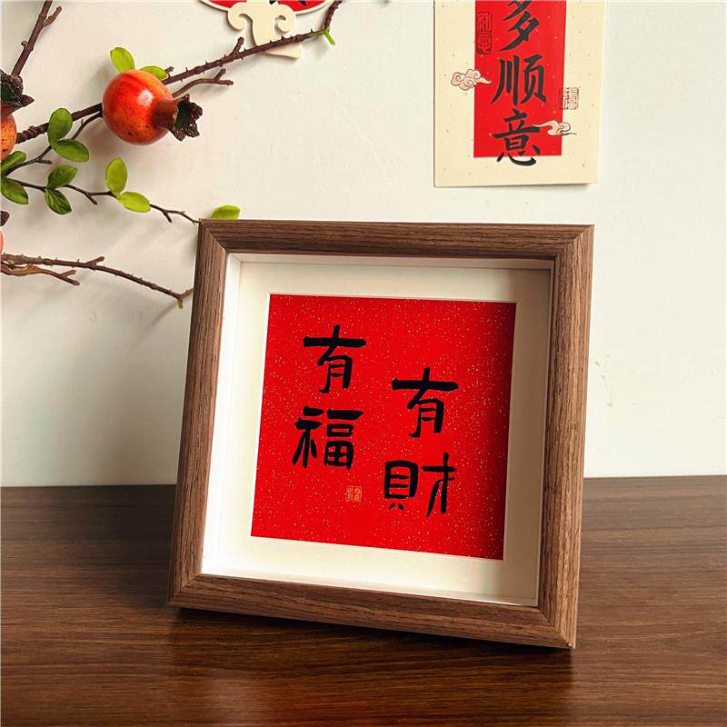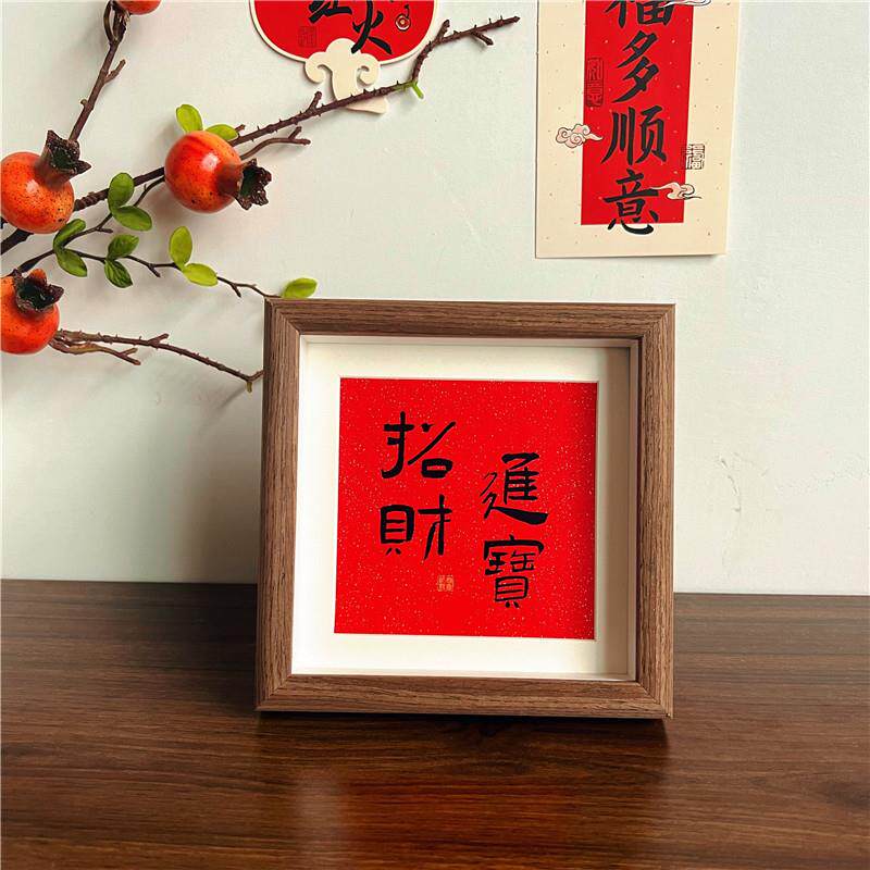新中式红色喜庆相框摆台祝福书法文字摆画 画入户玄关桌面装饰摆