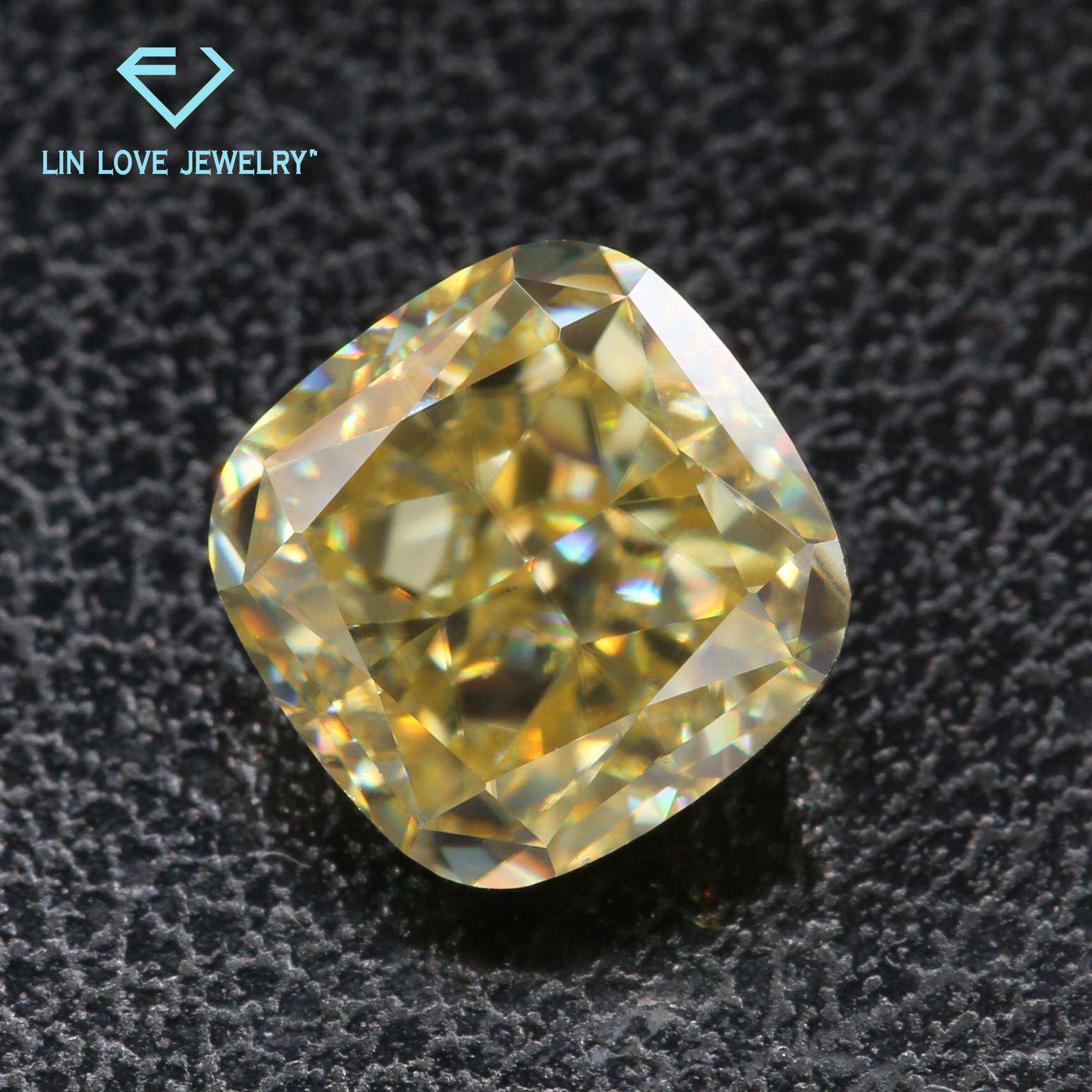 肥正方形金黄莫桑石裸石 枕形深中浅黄色莫桑石 冰花切工黄色原色