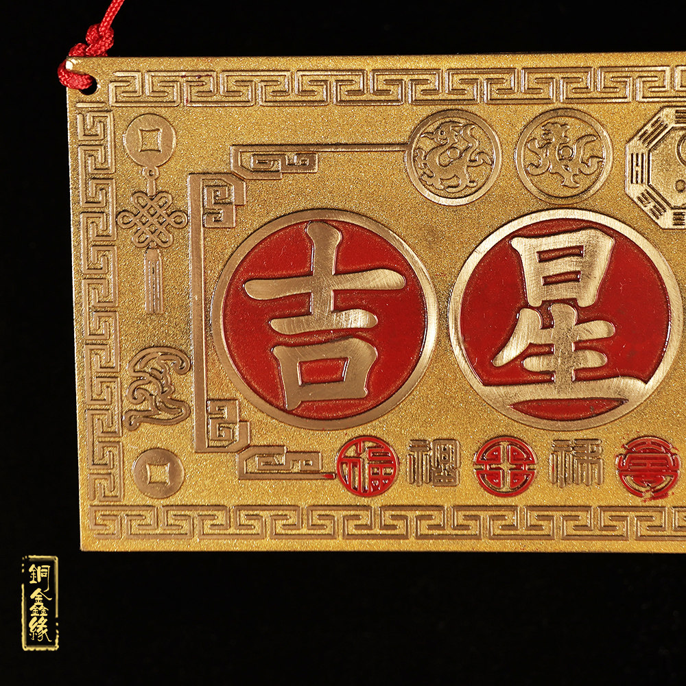 真黄铜天官赐福摆件横批牌挂件平安吉祥门对门牌匾家居装饰门牌