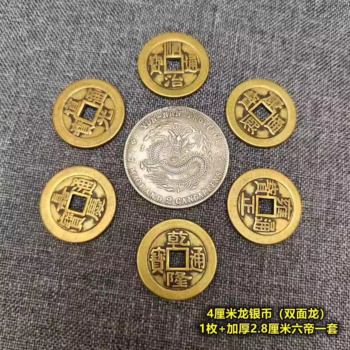 制安忍水龙银币龙纹摆件仿大清银币银元加厚乾隆铜钱六帝钱工艺品