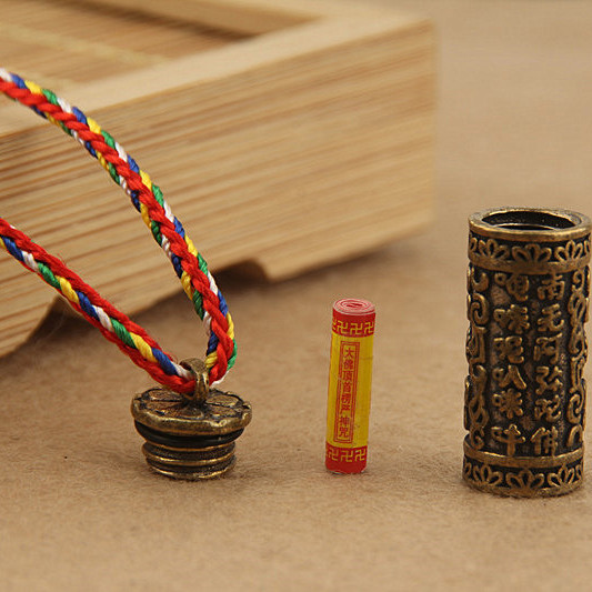 结缘纯黄铜楞严咒挂件六字真言大明咒项链吊坠男女款可打开装东西