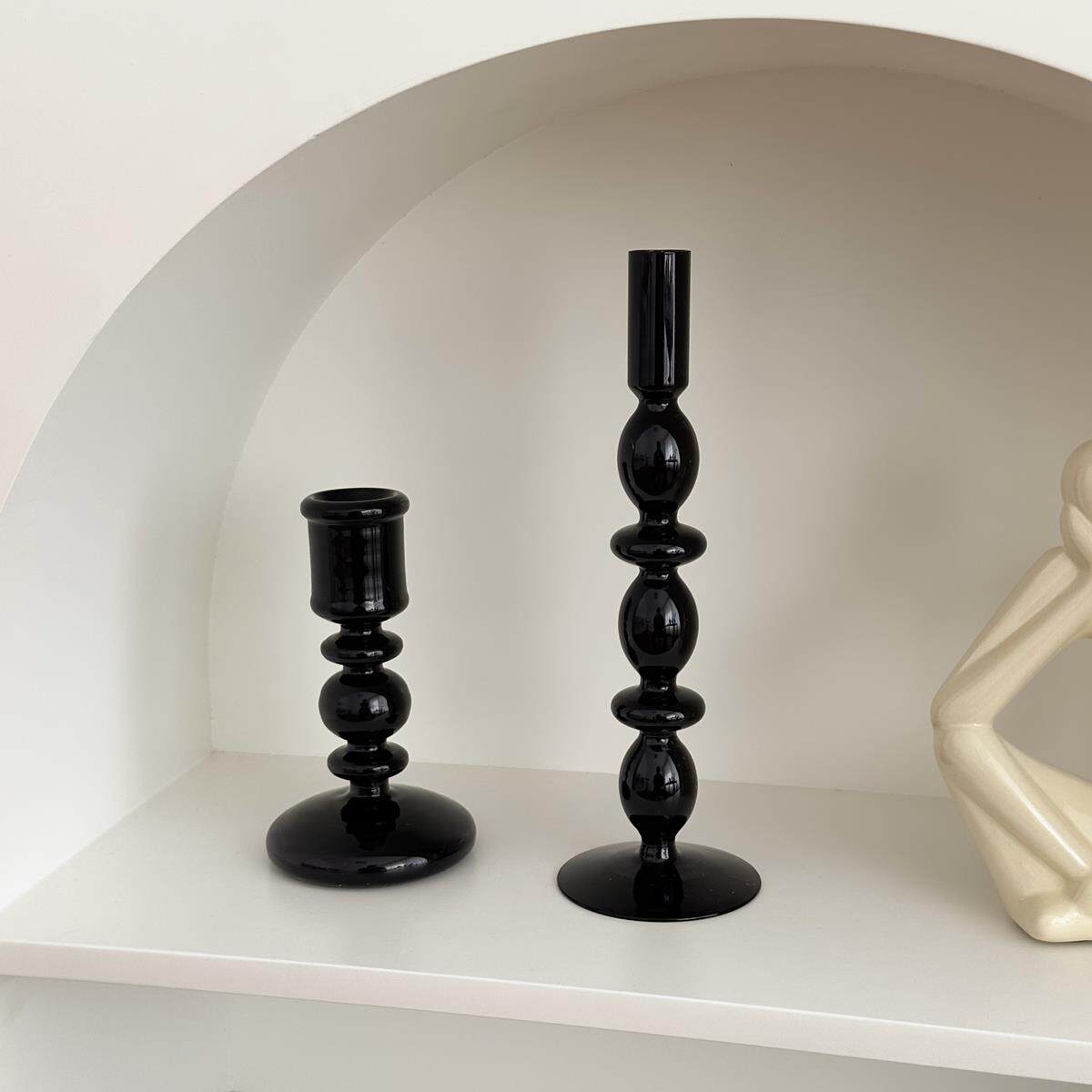复古黑色玻璃烛台玄关电视柜客厅装饰摆件高级感小众轻奢家居饰品