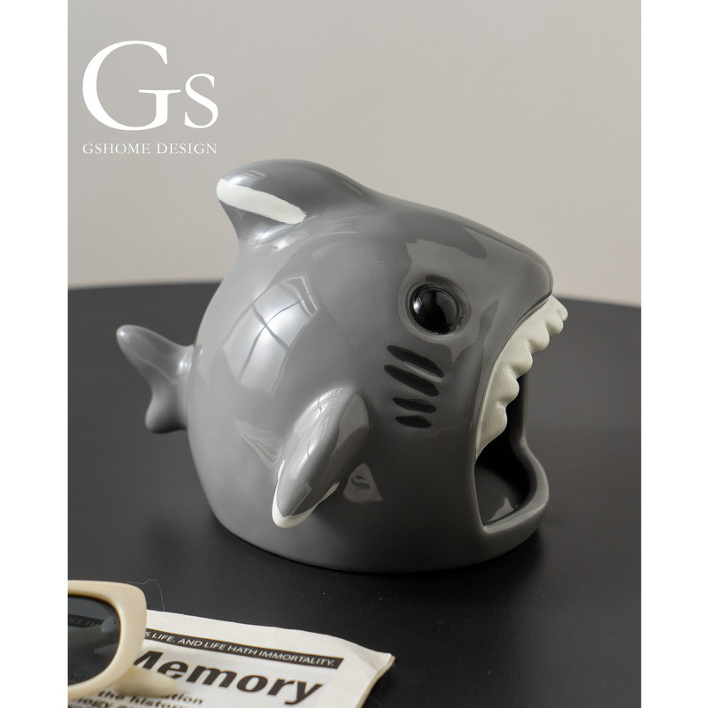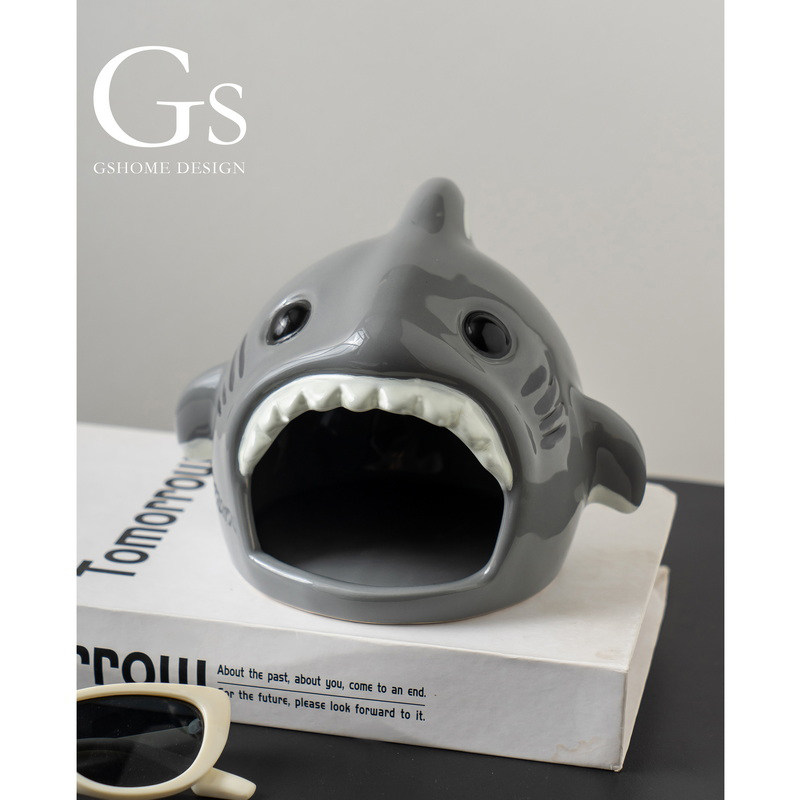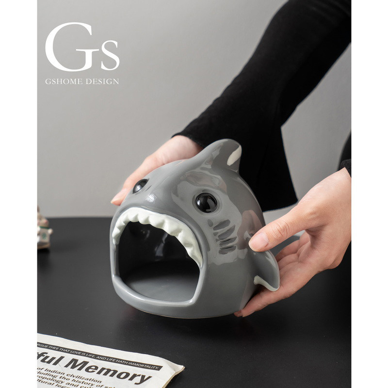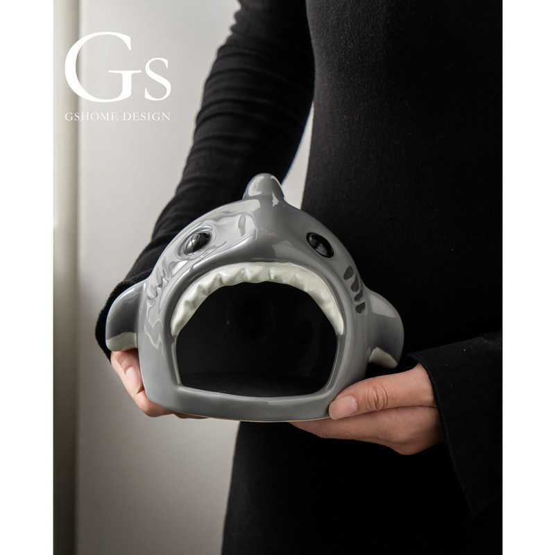 可爱卡通仓鼠窝陶瓷创意鲨鱼摆件蜜袋鼯金丝熊躲避屋小型宠物房子