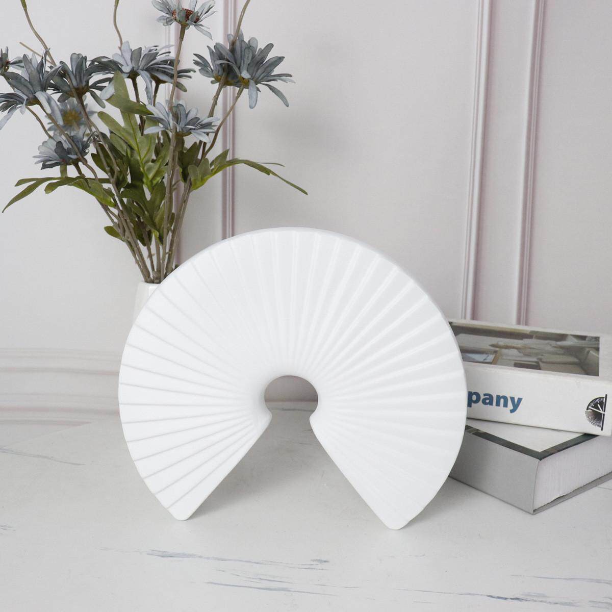 新中式现代简约白色扇形售楼处样板房摆件软装饰品创意工艺品摆设