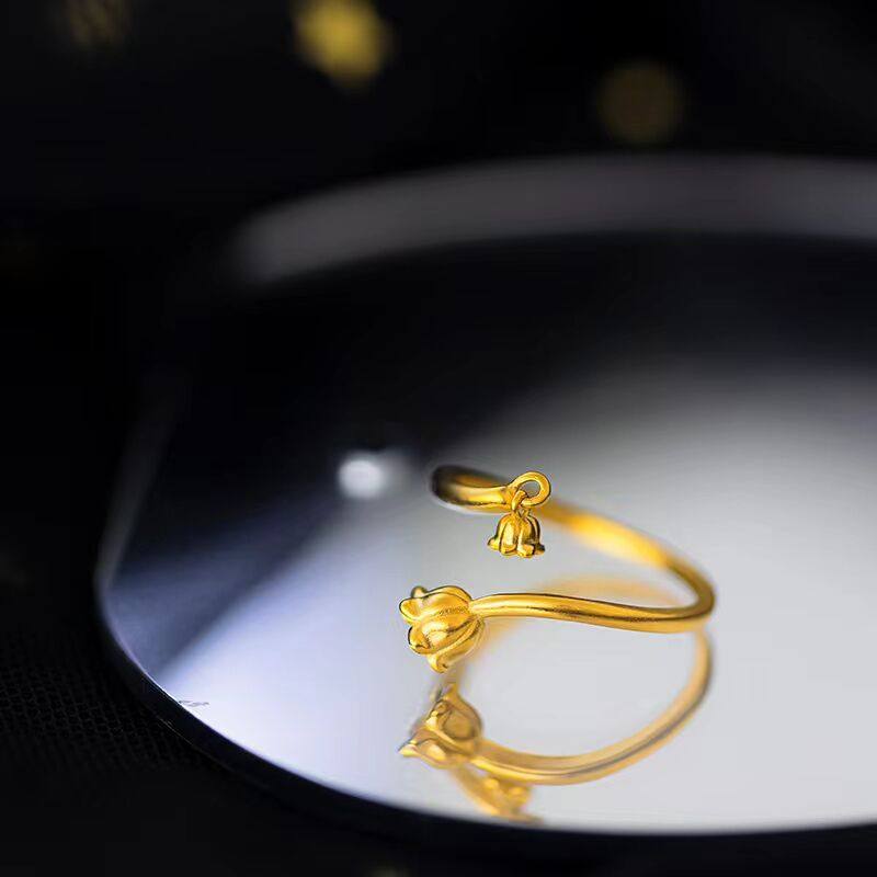 当前位置:首页>商品详情>新款24K黄金周家同款皇冠戒指女款999硬金可调5D硬莲蓬兰铃花戒指
