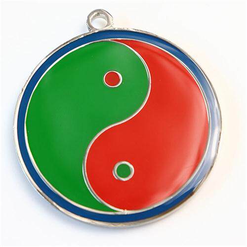 太极八卦吊坠 双面黄铜3.6公分江氏黄红蓝绿黑边太极图挂件钥匙扣